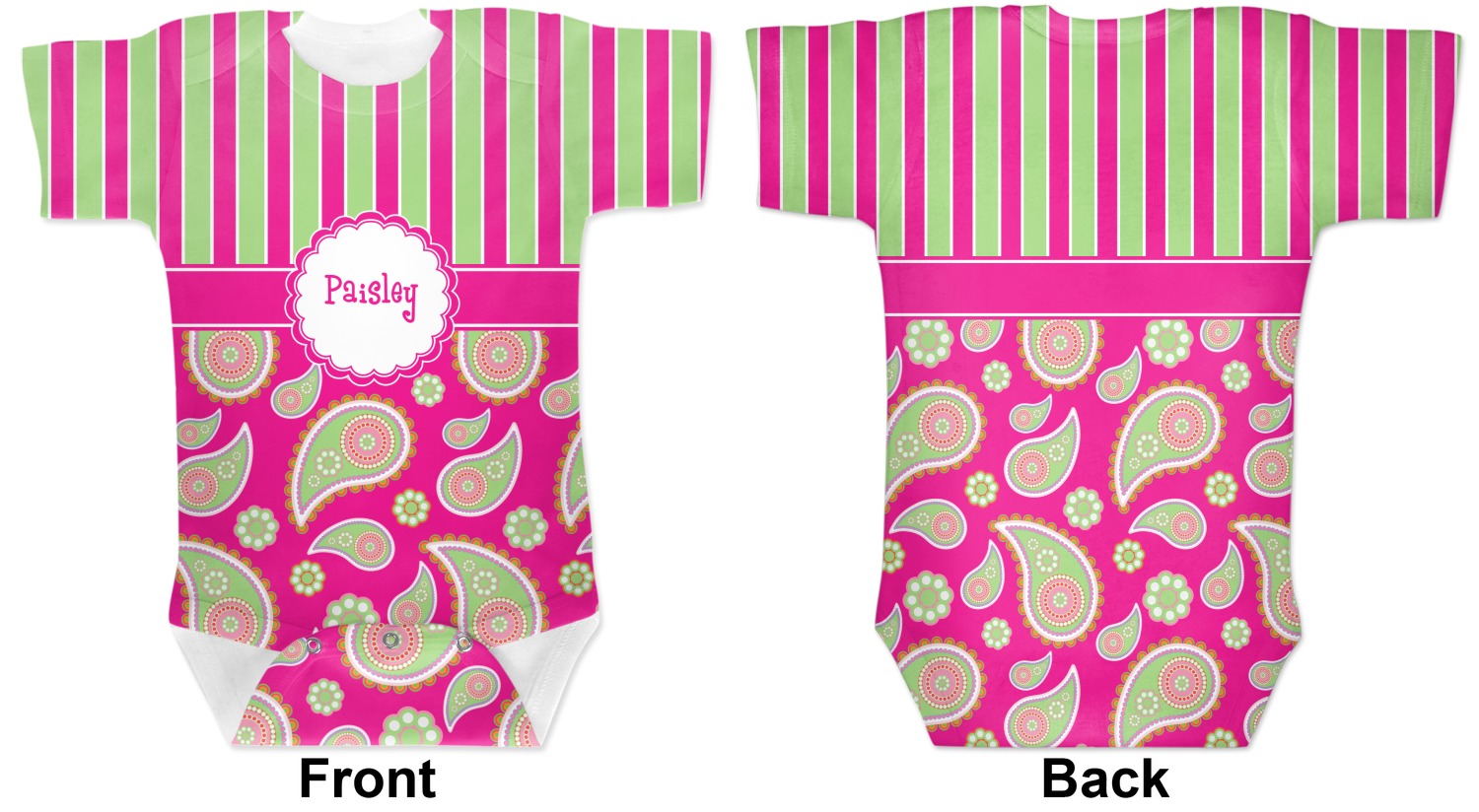 These cute baby bodysuits are made of stretchy, soft-to-the-touch polyester, making them very comfortable for your baby. These baby bodysuits also have snaps on the bottom to give easy access during changing times. Your personalization covers the entirety of this custom baby bodysuit, but the interior is white in color. As these are unisex baby bodysuits, they will work perfectly as baby girl bodysuits and baby boy bodysuits!