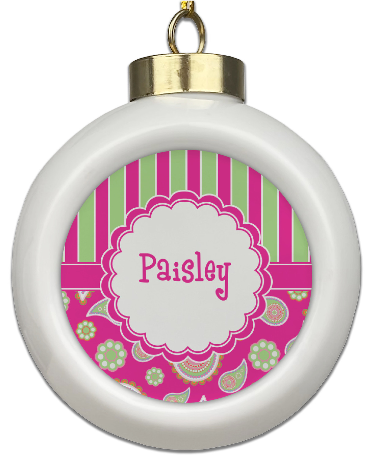 Our Christmas ornaments are a unique ceramic ball shape with a twist as it has a flat face to display your custom design! Select from one of our two design types - Christmas Tree or Poinsettia Garland - to adorn the curved back of your personal design. Each ornament measures 3H x 2.5W x 2D accompanied with a gold string accent for finishing touches to hang on your beautiful Christmas tree!