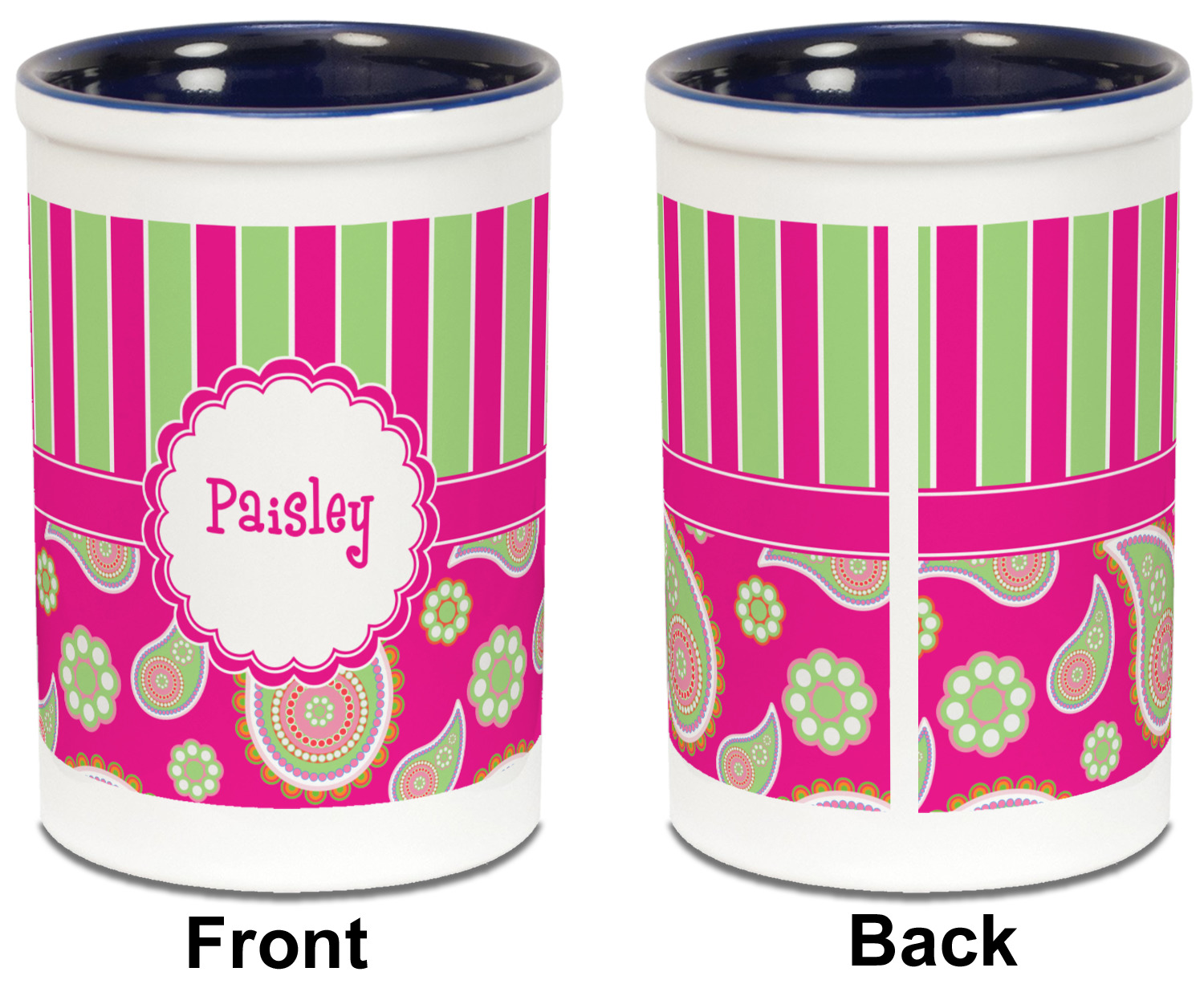 If you have a passion for paisley then this is the pattern for you. This bold and bright pink & green paisley pattern is made from today's trendy color combination of pinks and greens. As if the paisley design was not enchanting enough we have up the ante by adding bold stripes of hot pink and lime green on the top.