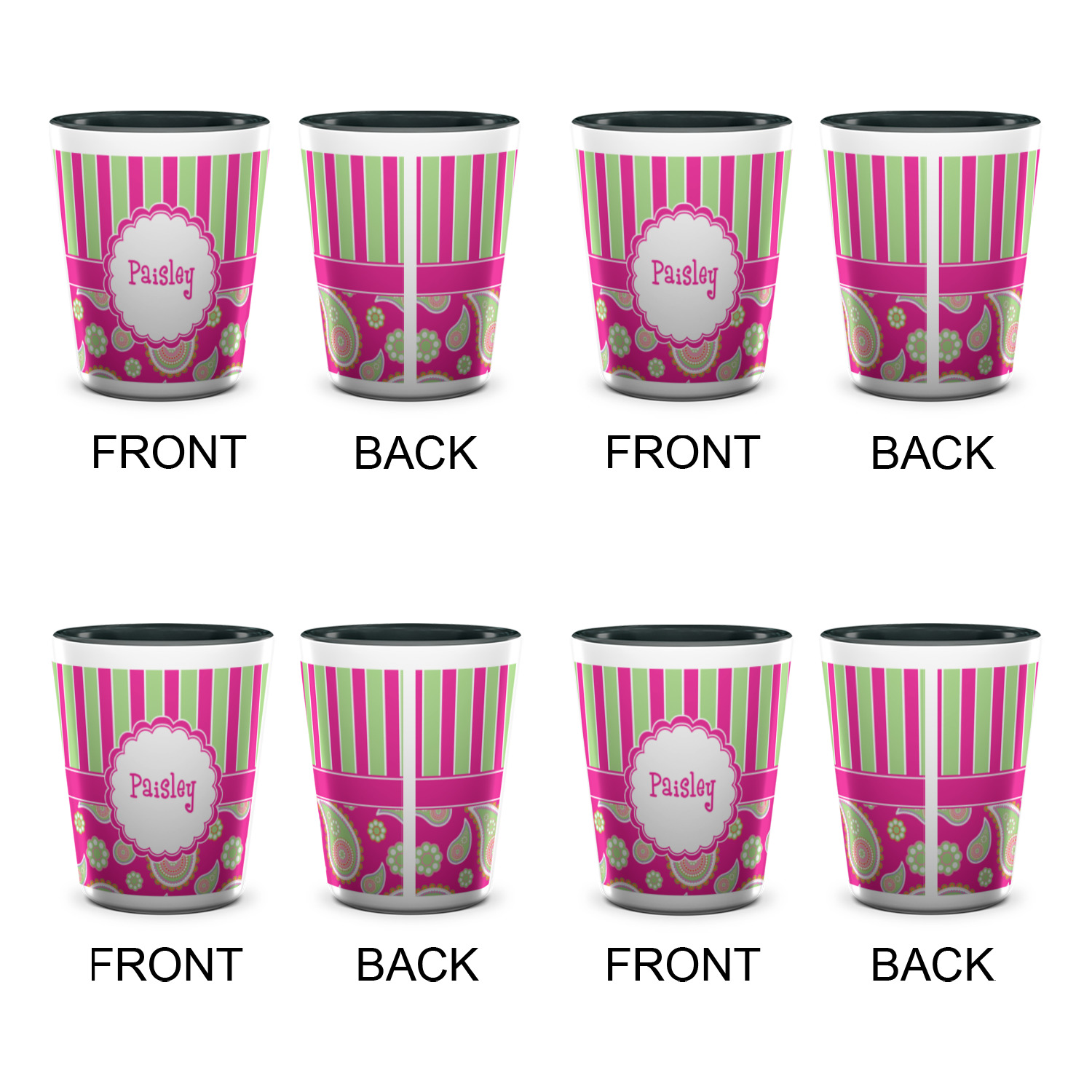 Made from ceramic these shot glasses are printed in full color with the design of your choice. These are a standard 1.5oz size and stand 2.25" tall. Available in a full white ceramic or a two-tone with a black color inside the shot glass. Buy a single or a set of 4, all of which can be designed separately to get you just what you want and need.