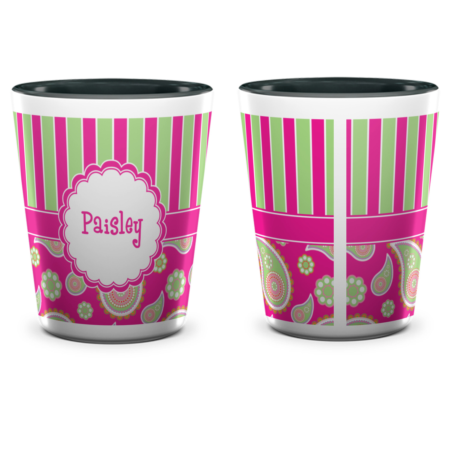 Made from ceramic these shot glasses are printed in full color with the design of your choice. These are a standard 1.5oz size and stand 2.25" tall. Available in a full white ceramic or a two-tone with a black color inside the shot glass. Buy a single or a set of 4, all of which can be designed separately to get you just what you want and need.