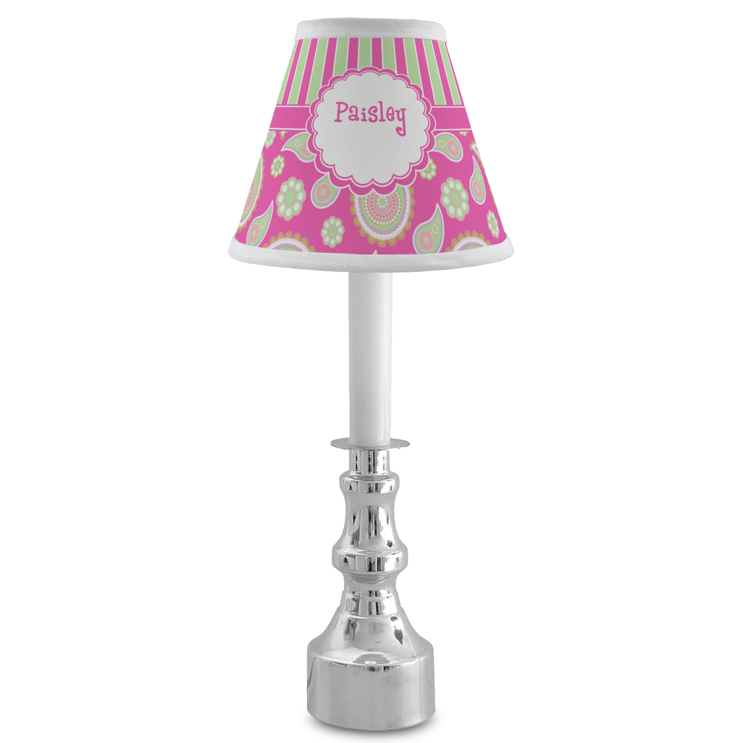 Our personalized mini lamp shades will look fantastic on any light with candelabra bulbs such as candle lamps or wall sconces. They will even look amazing as a set on a chandelier! They may be small in size, but they will make a big splash in your décor and are a great way to freshen up the look of a room!