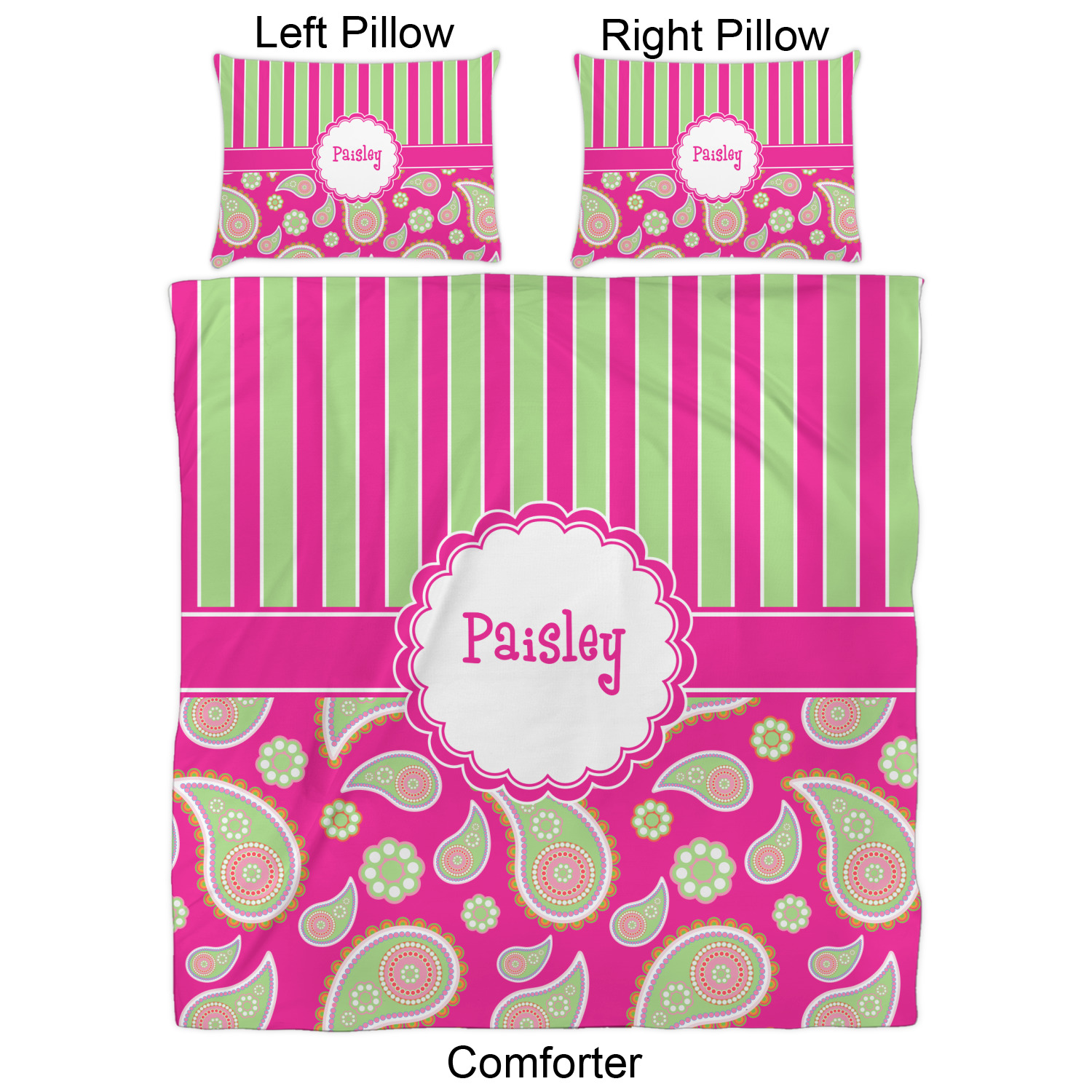 We have hundreds of different design templates for you to choose from Each design can be customized to your exact specifications. Not only can you customize the comforter, but you can also customize each pillow sham e.g. for a queen comforter set you have have Mr & Mrs pillow shams with the last name on comforter.