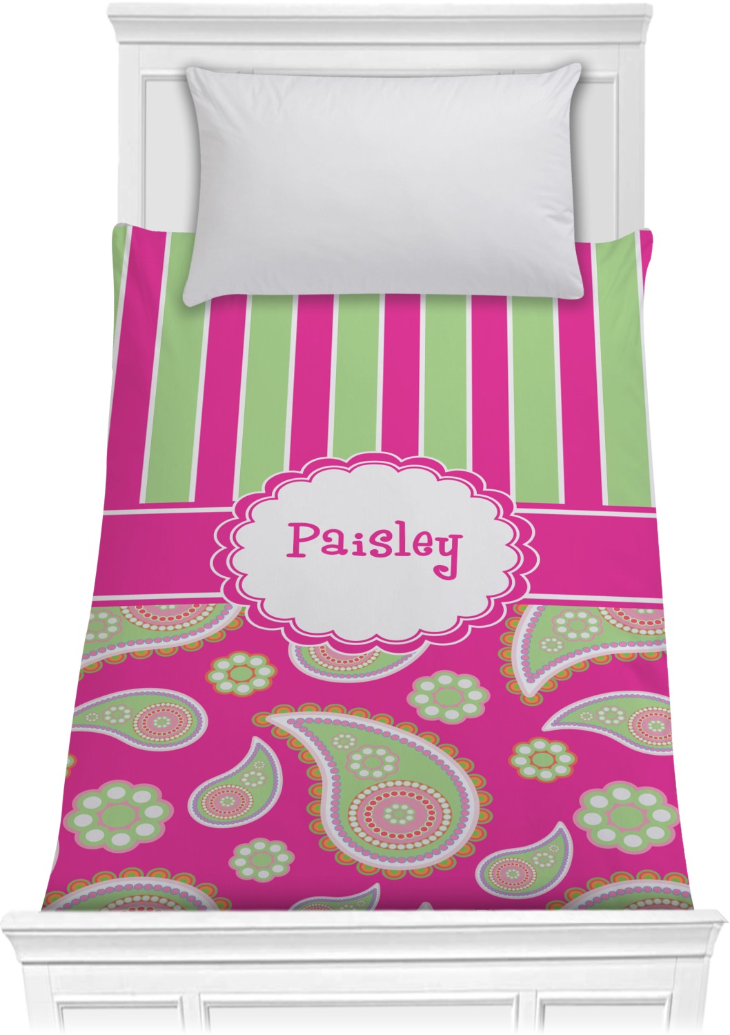 If you have a passion for paisley then this is the pattern for you. This bold and bright pink & green paisley pattern is made from today's trendy color combination of pinks and greens. As if the paisley design was not enchanting enough we have up the ante by adding bold stripes of hot pink and lime green on the top.