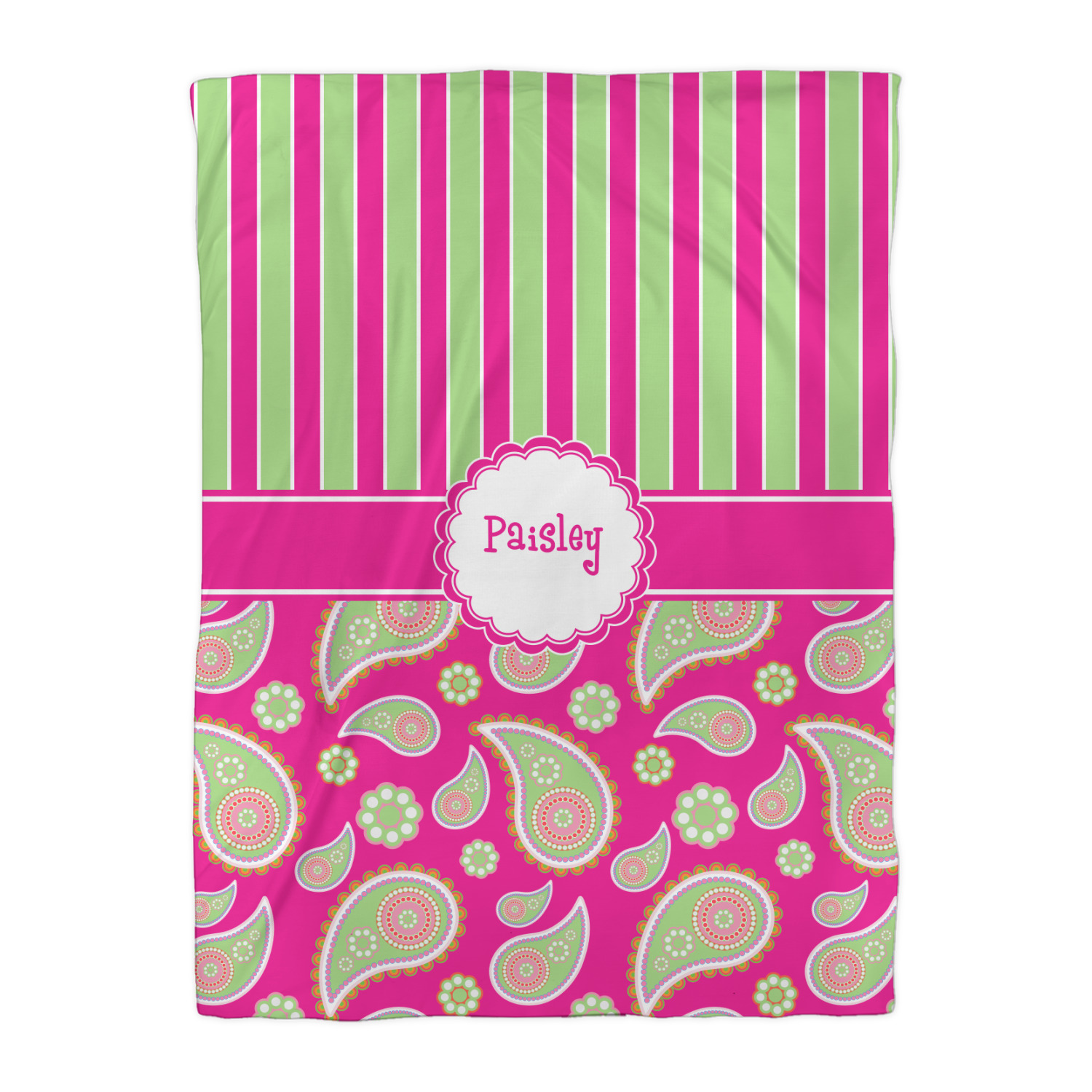 If you have a passion for paisley then this is the pattern for you. This bold and bright pink & green paisley pattern is made from today's trendy color combination of pinks and greens. As if the paisley design was not enchanting enough we have up the ante by adding bold stripes of hot pink and lime green on the top.