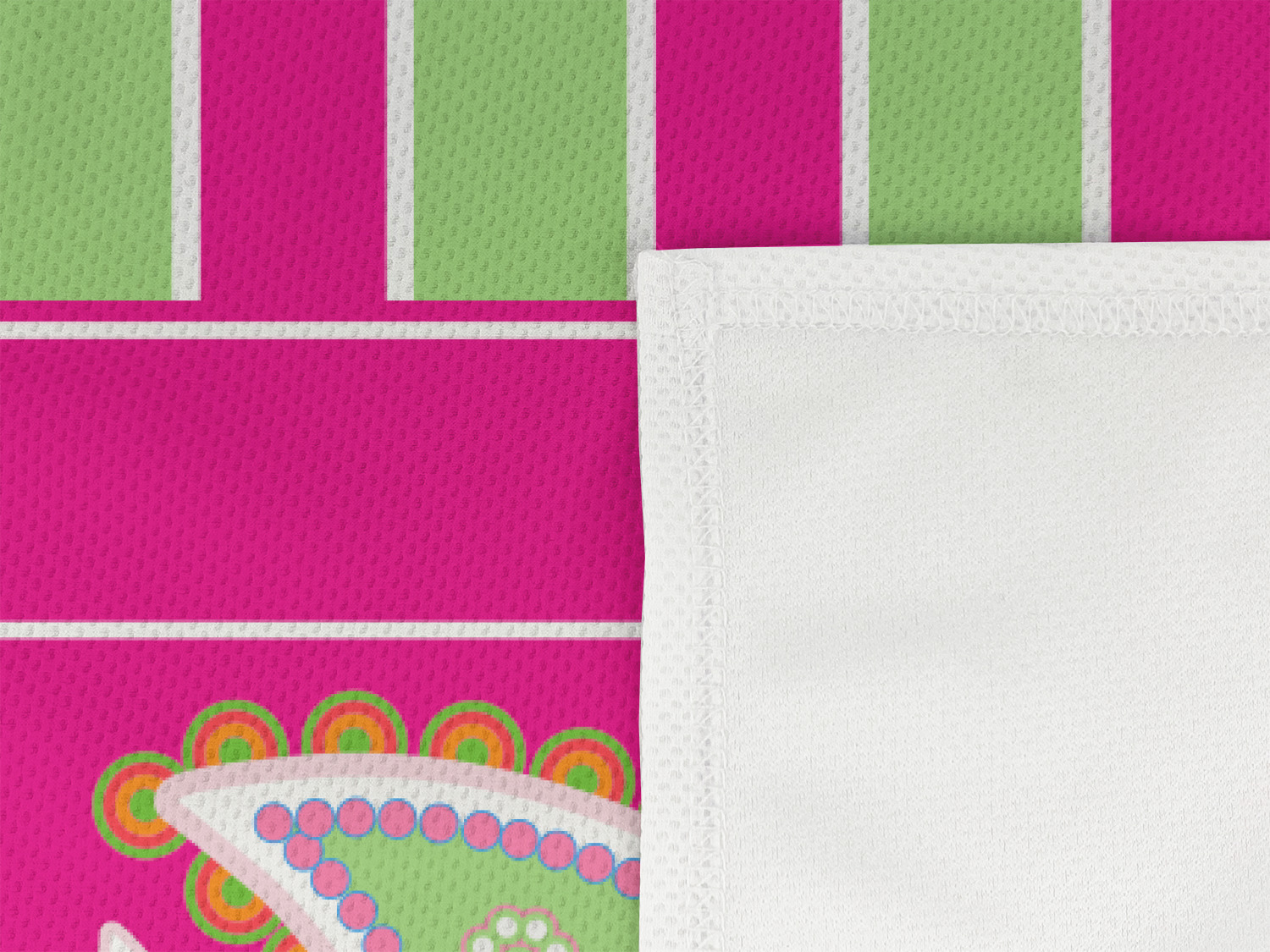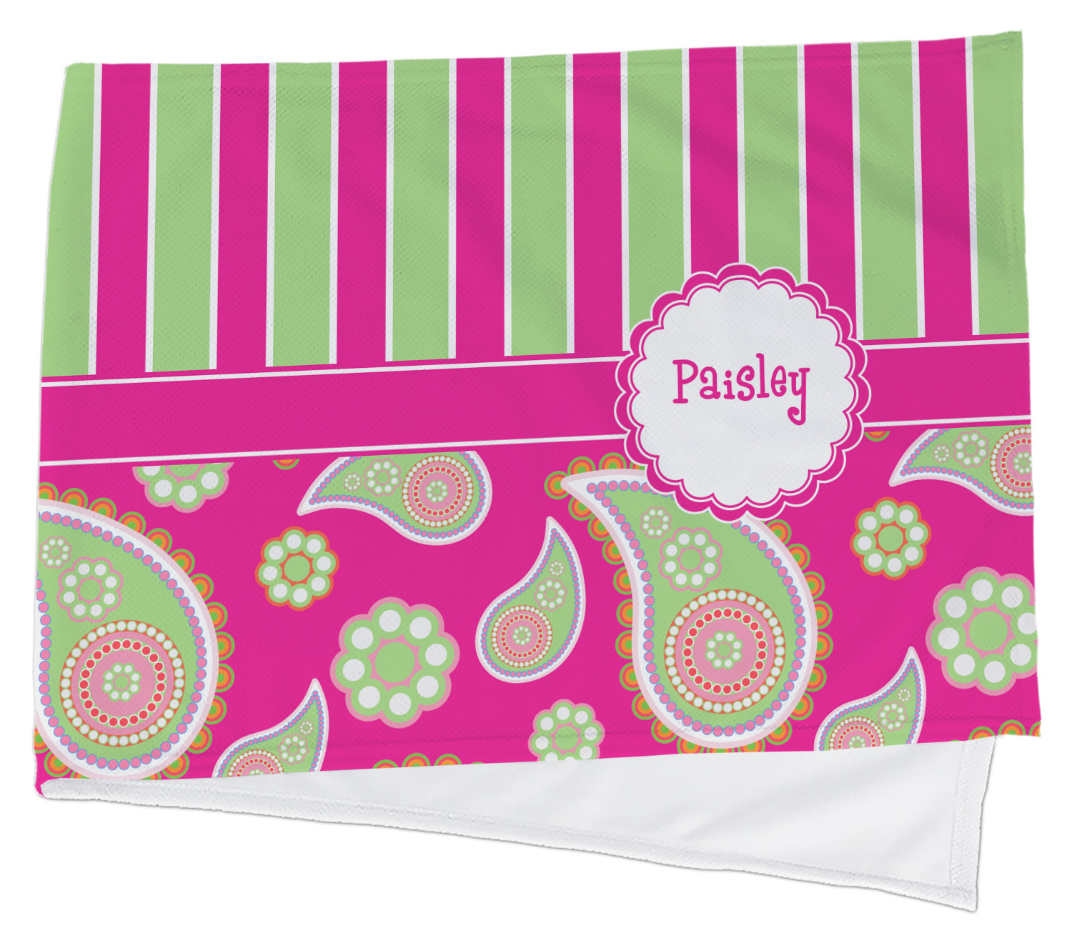 If you have a passion for paisley then this is the pattern for you. This bold and bright pink & green paisley pattern is made from today's trendy color combination of pinks and greens. As if the paisley design was not enchanting enough we have up the ante by adding bold stripes of hot pink and lime green on the top.
