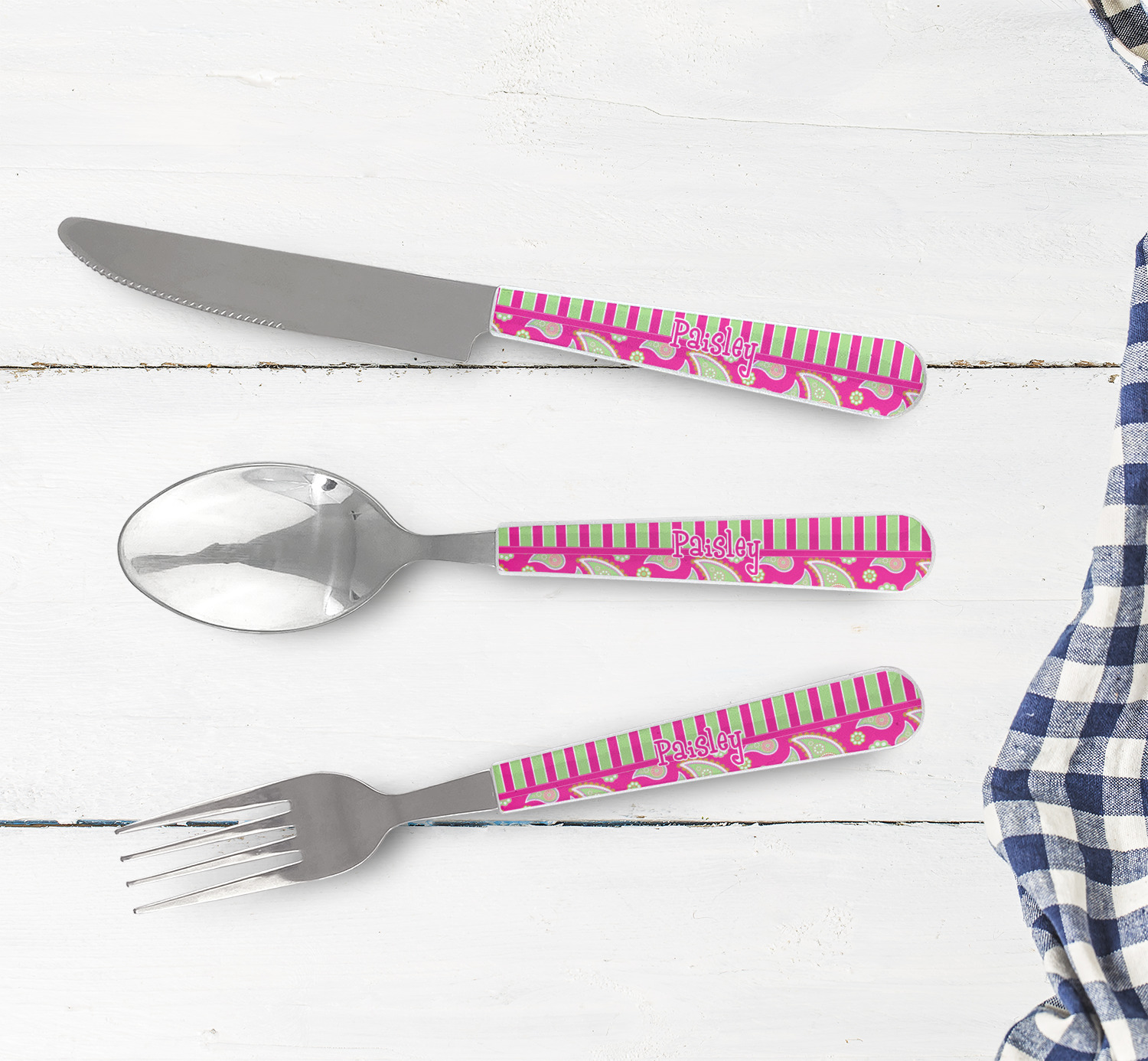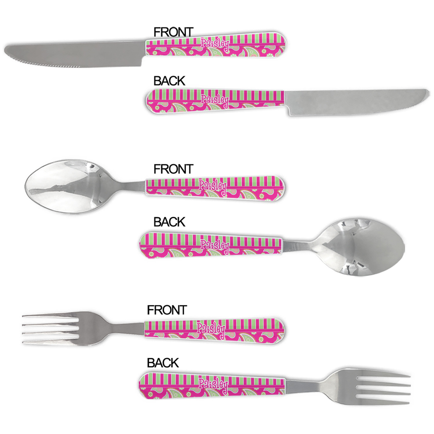 One of those items we all use on a daily basis and never give it much thought - cutlery. Having your own customized set of cutlery adds that special touch. A great addition to our custom plates and drinking pint glasses, this flatware set can be made in the same patterns to match.