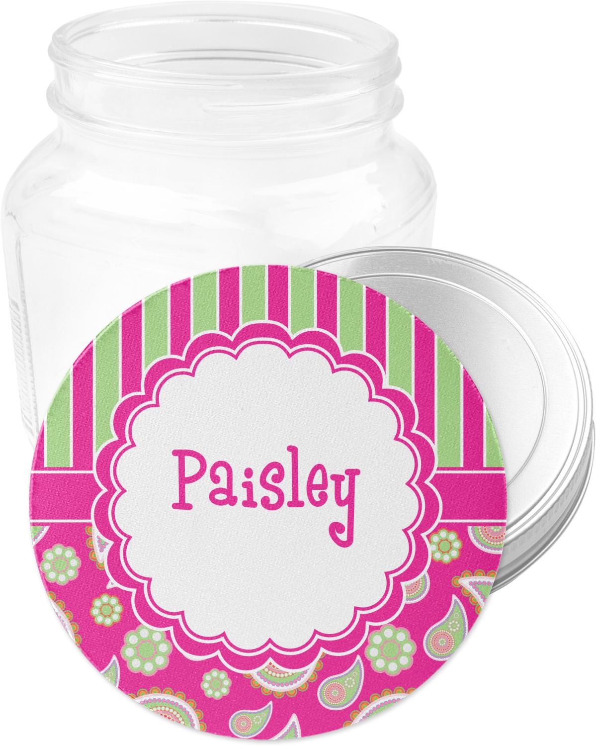 A beautiful circle scalloped label is place in the middle highlighted by the lime green band. Add the personalization of your choice for that special touch.