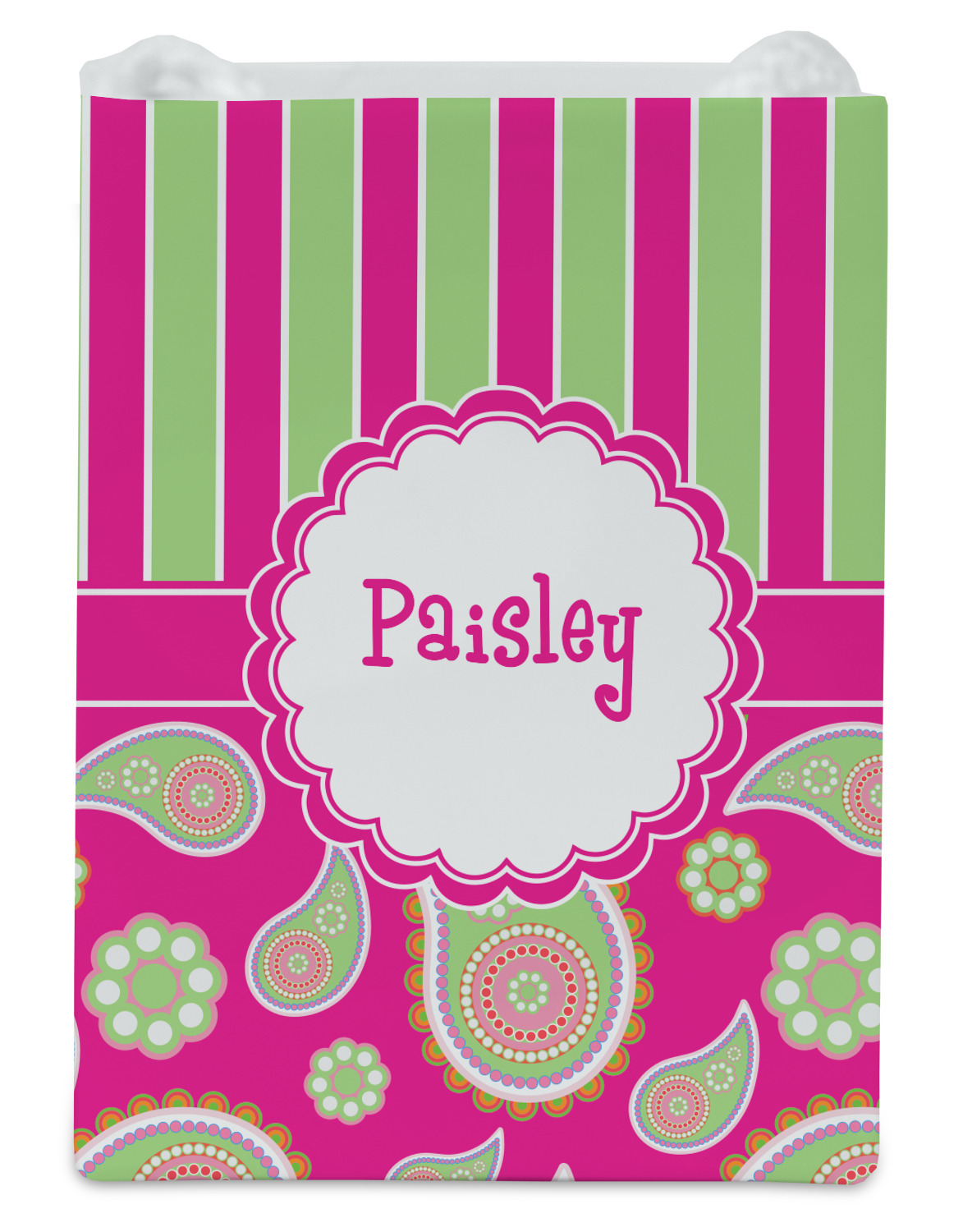 If you have a passion for paisley then this is the pattern for you. This bold and bright pink & green paisley pattern is made from today's trendy color combination of pinks and greens. As if the paisley design was not enchanting enough we have up the ante by adding bold stripes of hot pink and lime green on the top.