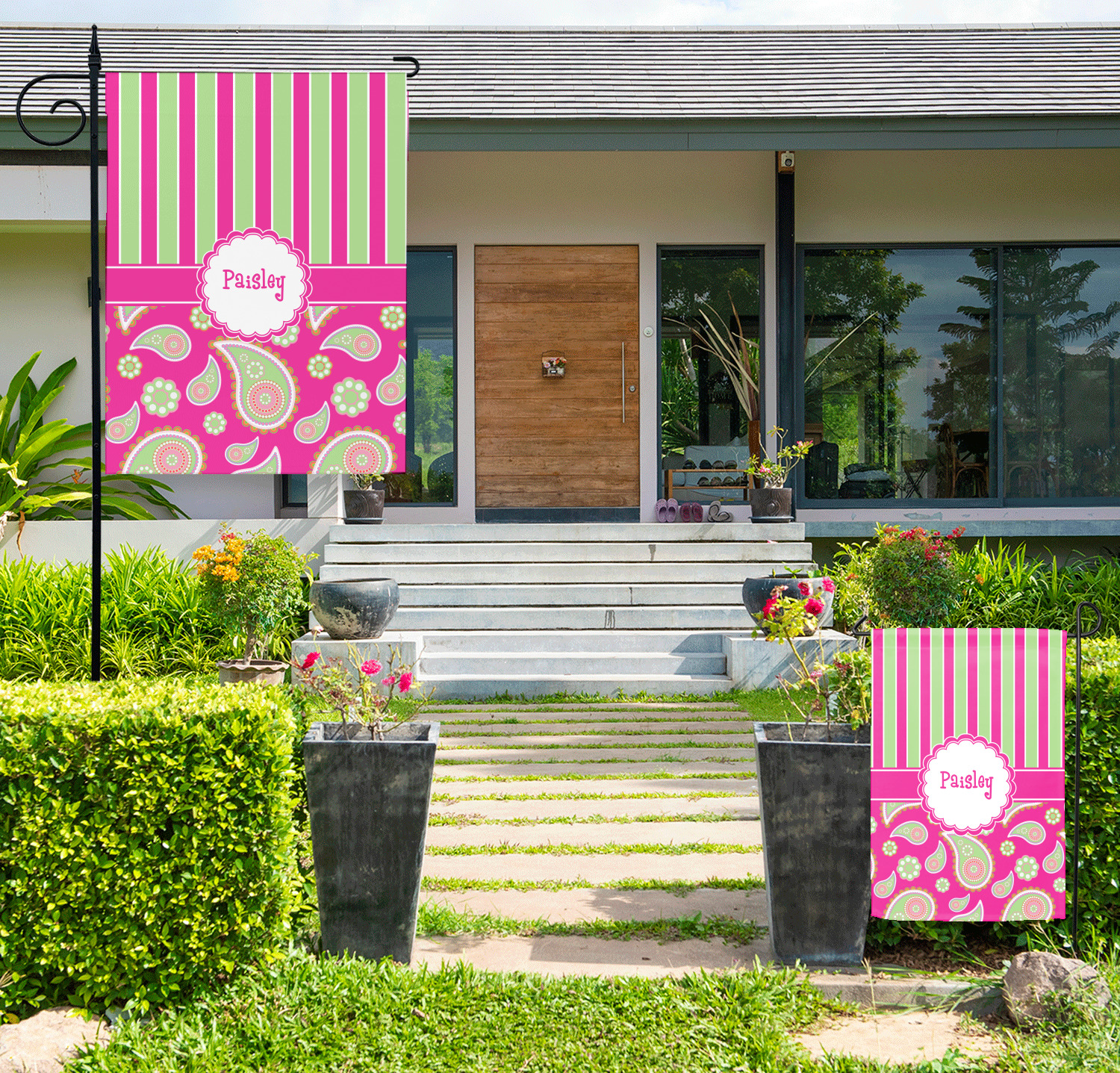 Decorate your front yard or your garden with one of our personalized garden flags! These garden flags will add a splash of color and personalization to any home's greenspace. Customize one with your name, favorite colors, and patterns, as a great addition to your home's exterior! Or, customize multiple seasonal flags and change them throughout the year!