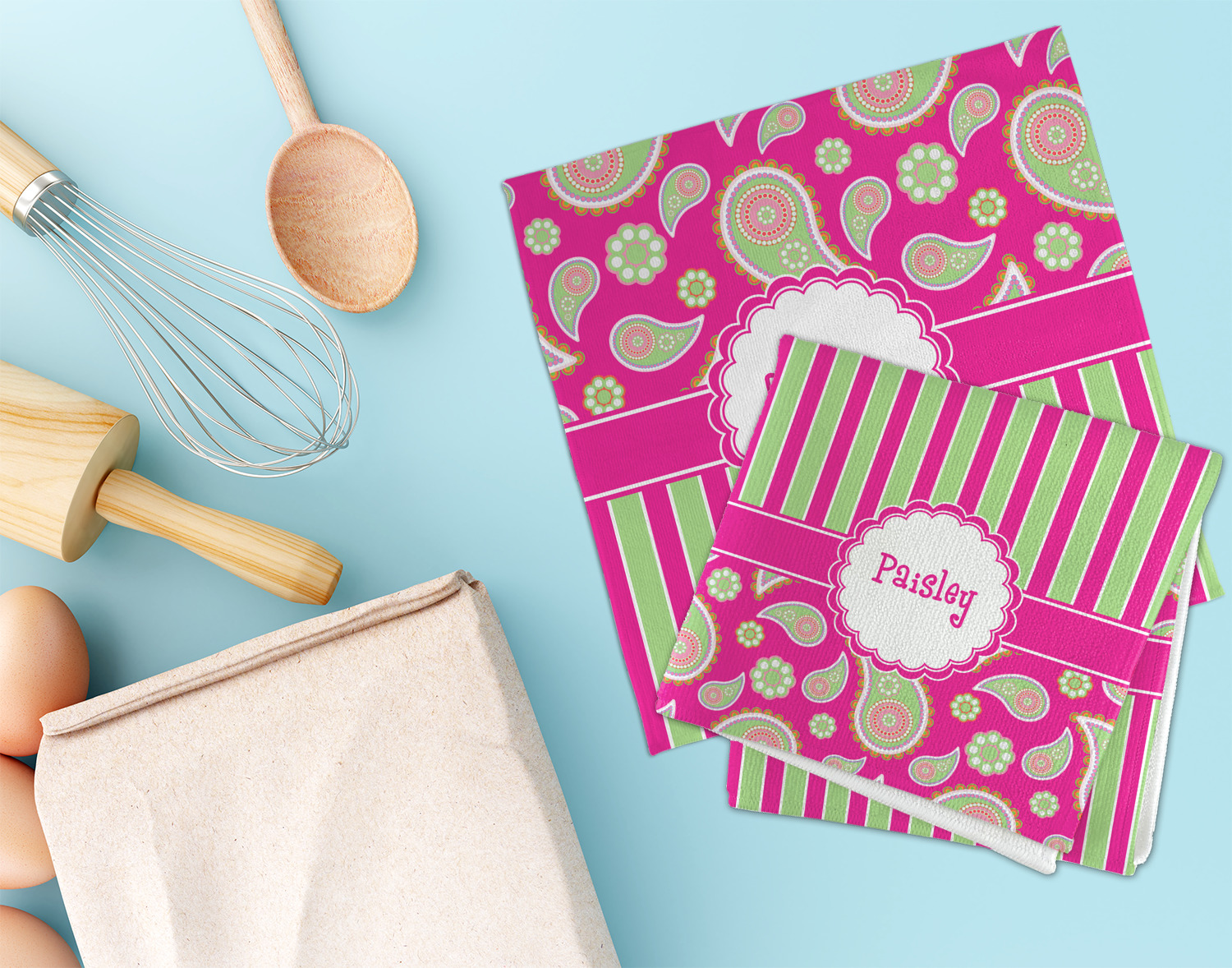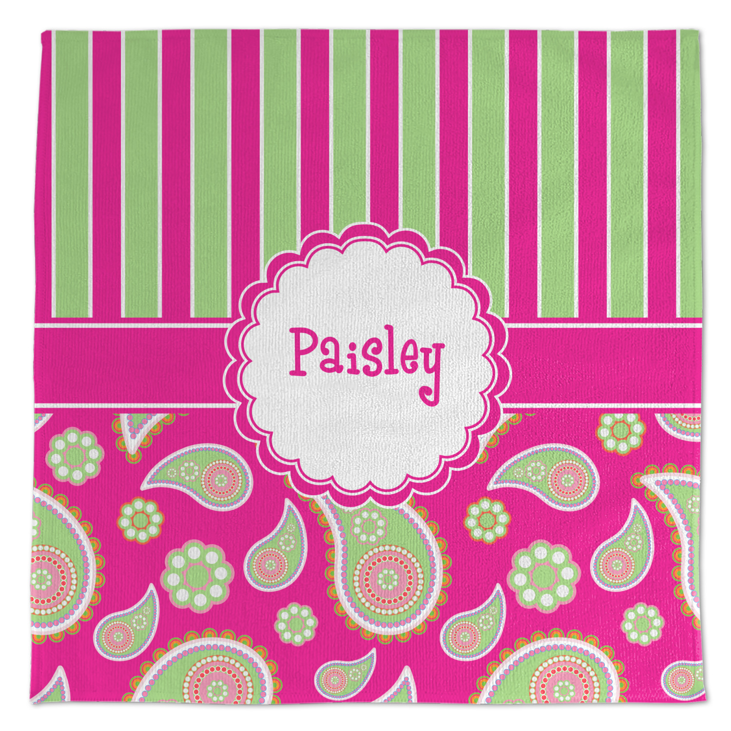 If you have a passion for paisley then this is the pattern for you. This bold and bright pink & green paisley pattern is made from today's trendy color combination of pinks and greens. As if the paisley design was not enchanting enough we have up the ante by adding bold stripes of hot pink and lime green on the top.