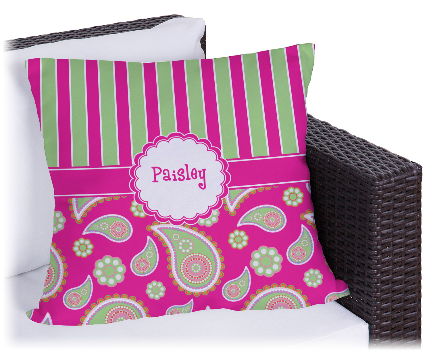 If you have a passion for paisley then this is the pattern for you. This bold and bright pink & green paisley pattern is made from today's trendy color combination of pinks and greens. As if the paisley design was not enchanting enough we have up the ante by adding bold stripes of hot pink and lime green on the top.