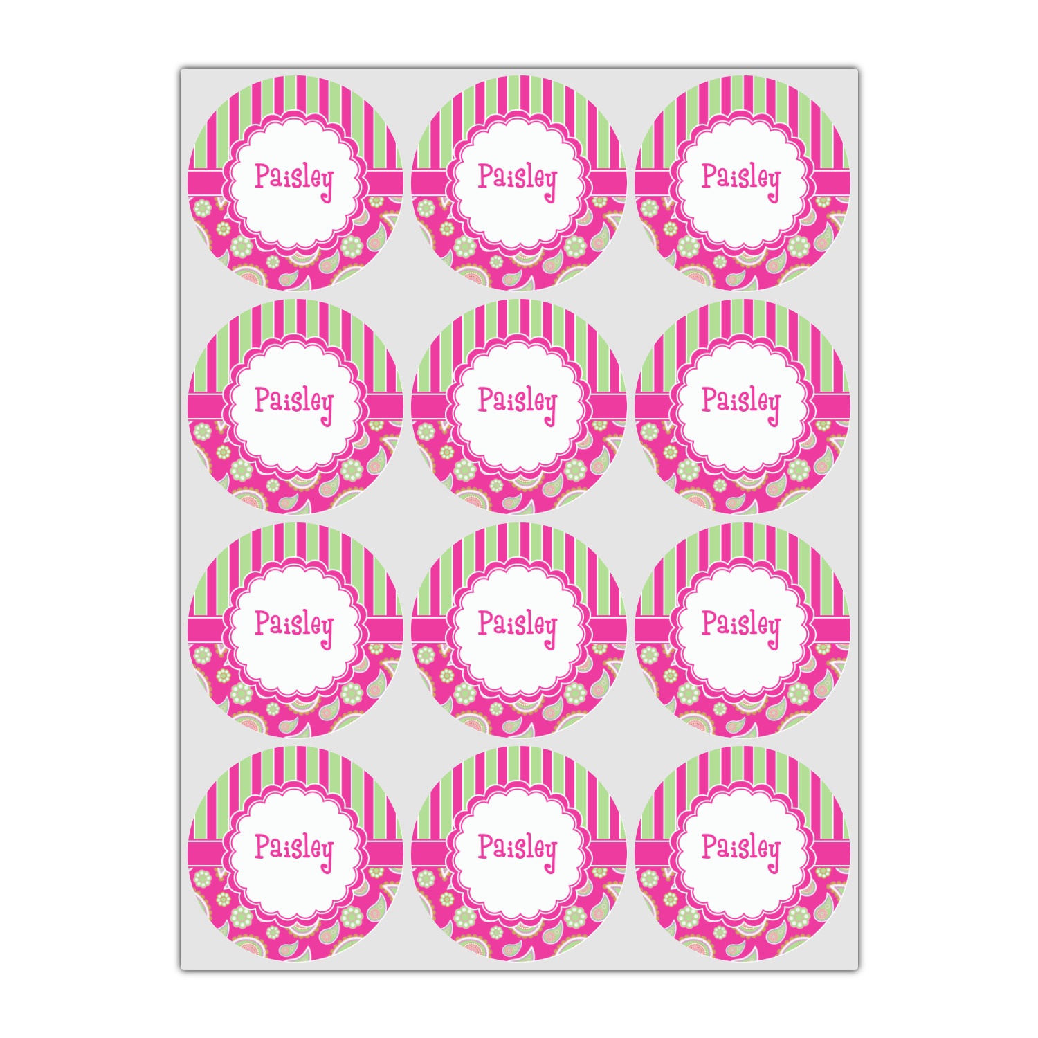A beautiful circle scalloped label is place in the middle highlighted by the lime green band. Add the personalization of your choice for that special touch.