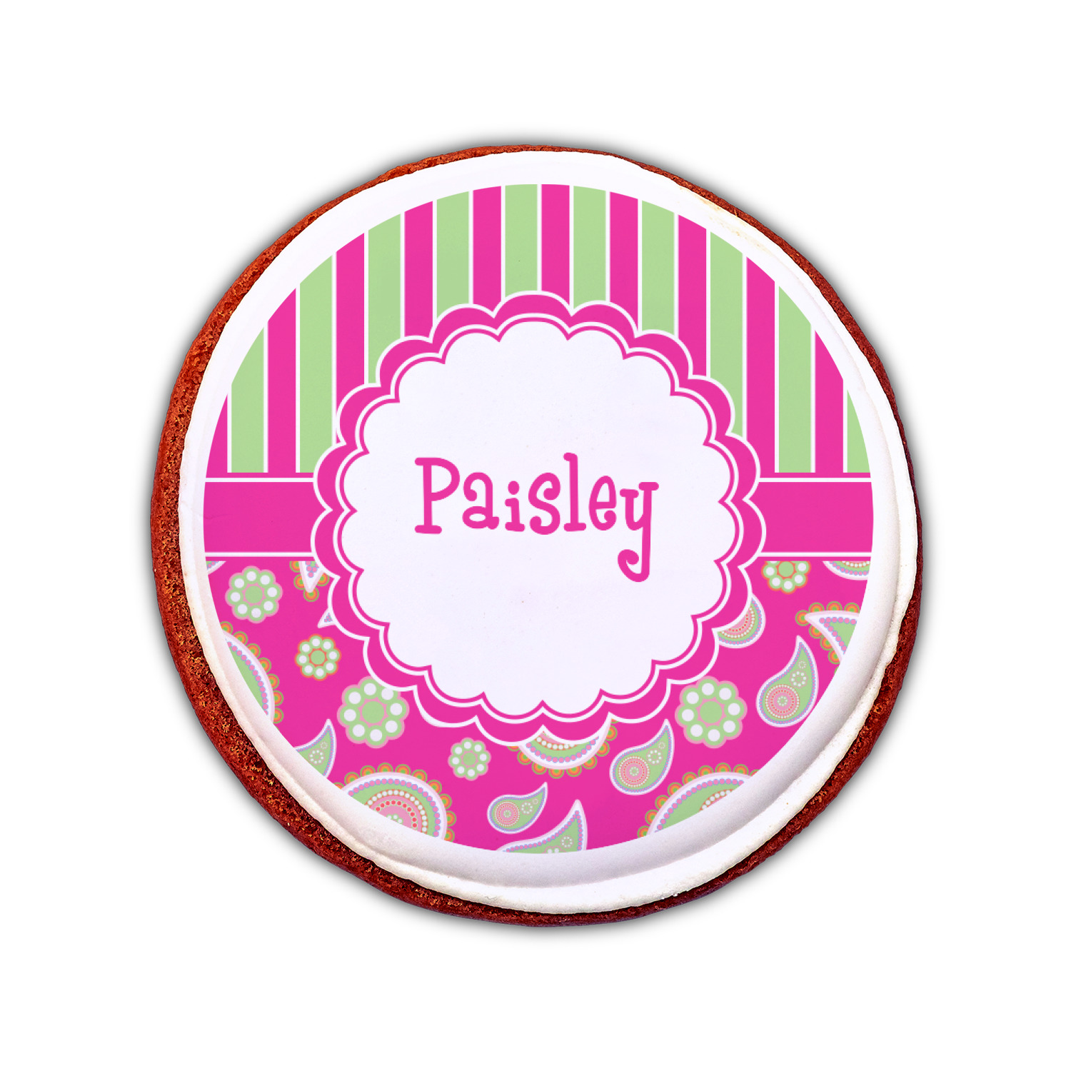 Our cookie toppers are printed in full color with FDA approved edible inks. The toppers are printed on premium wafer thin icing sheets (not wafer paper) and then cut into circles.