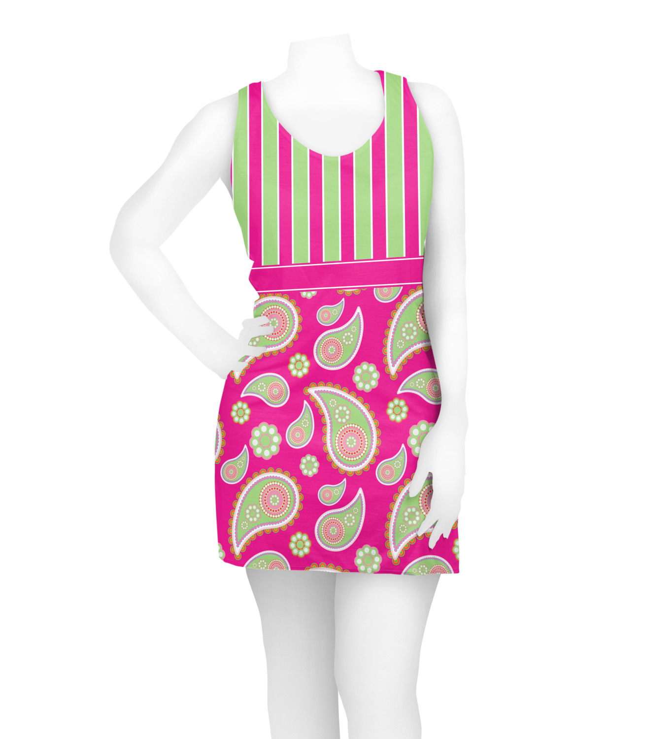 If you have a passion for paisley then this is the pattern for you. This bold and bright pink & green paisley pattern is made from today's trendy color combination of pinks and greens. As if the paisley design was not enchanting enough we have up the ante by adding bold stripes of hot pink and lime green on the top.