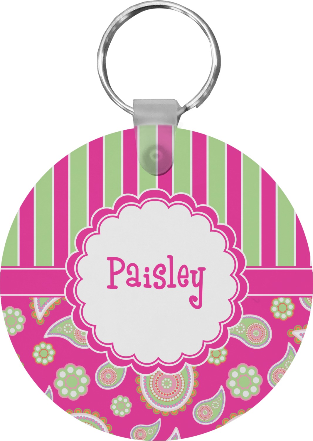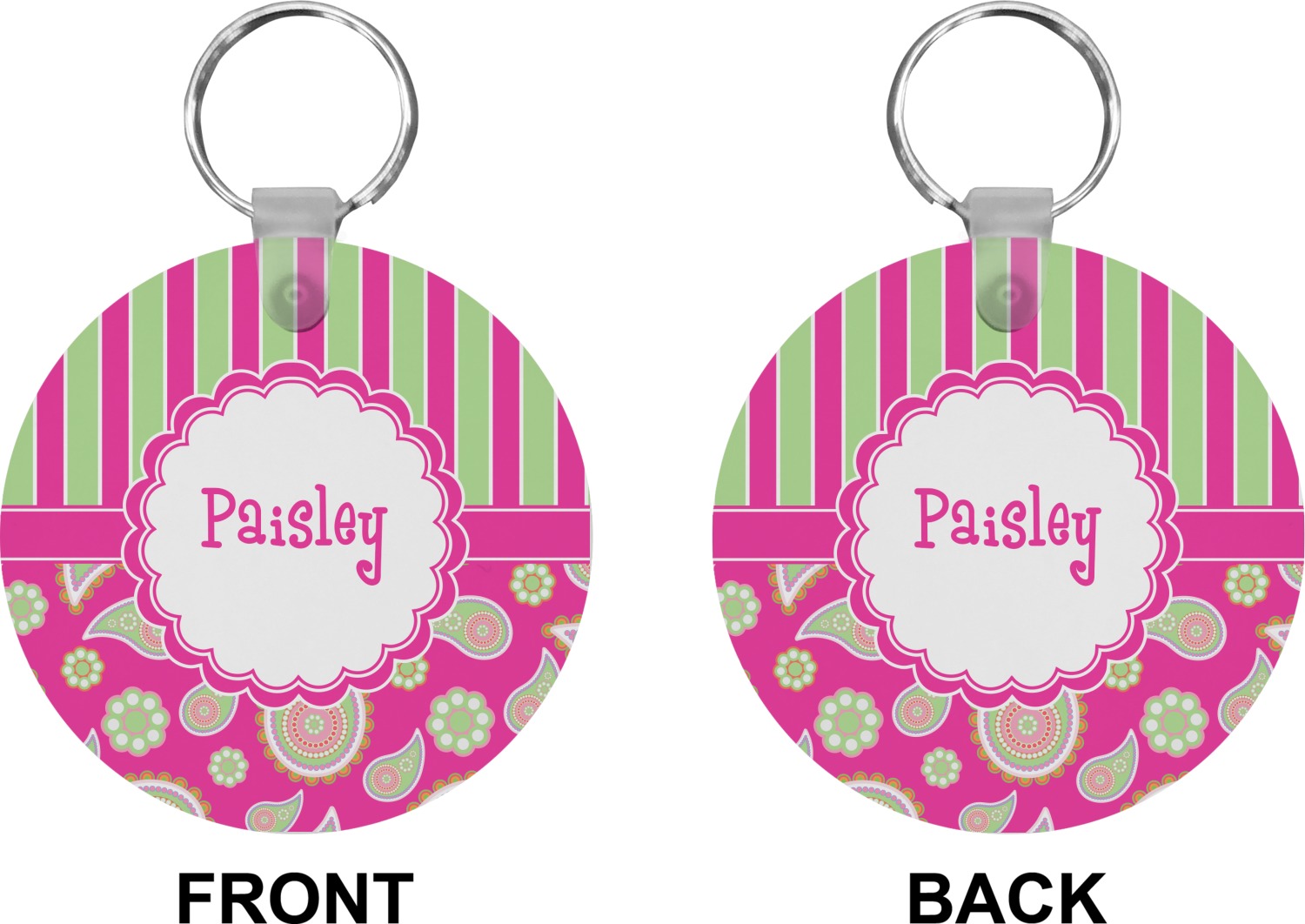 | SKU | mi-keychain-round+Pink-Green-Paisley-and-Stripes |