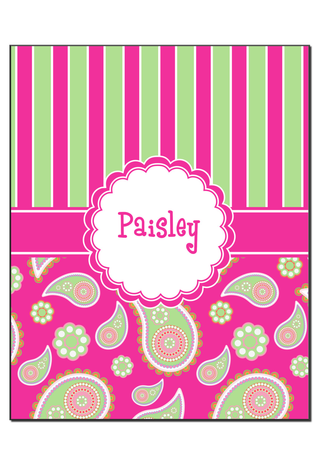 If you have a passion for paisley then this is the pattern for you. This bold and bright pink & green paisley pattern is made from today's trendy color combination of pinks and greens. As if the paisley design was not enchanting enough we have up the ante by adding bold stripes of hot pink and lime green on the top.