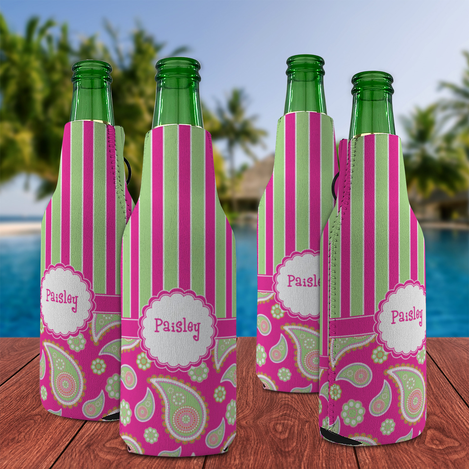 Fabricated from a thick, insulating neoprene, these custom can sleeve keep your drink cold, while proudly displaying your customization on all sides. These can sleeves are designed to fit most 12oz bottles. Available in two types - zipper cooler for insulating the full bottle or the jersey style for sports season. Also available as a single can sleeve or in a set of 4 for you to share with friends and family. For convenient storage, they can also be folded.