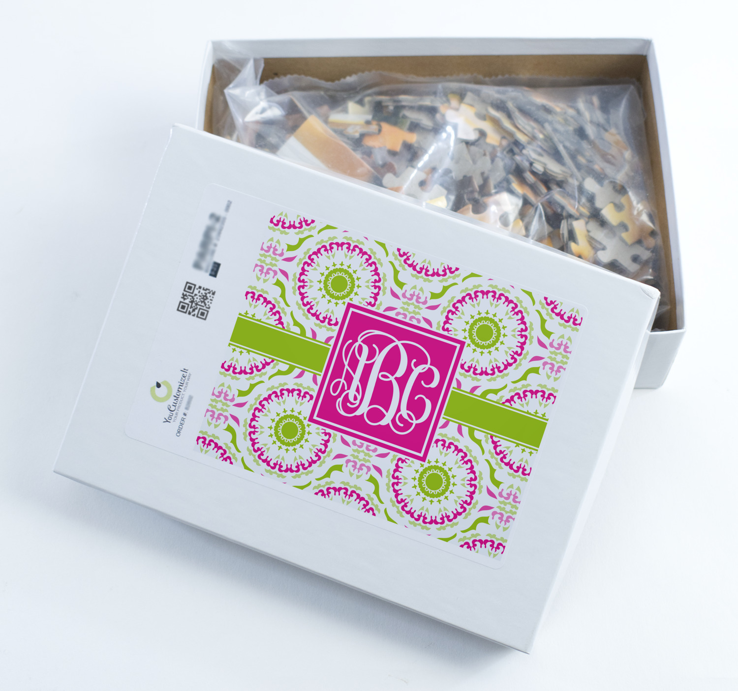 Depending on the look you are trying to achieve, you can add; a thematic pattern or background, with a photo in a frame and text or personalization to your puzzle. Basically if you can imagine it, you can design it!