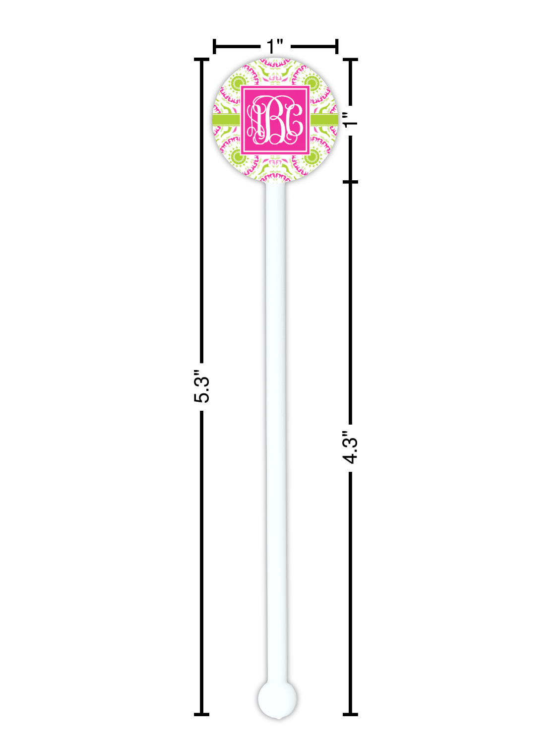 This design has a beautiful suzani floral pattern for the background. The colors in the background are white, hot pink, and lime green. These colors look super cute together. There is a lime green ribbon with a hot pink frame on top. Inside the frame is where your personalization goes. Put text or your initials for a monogram.