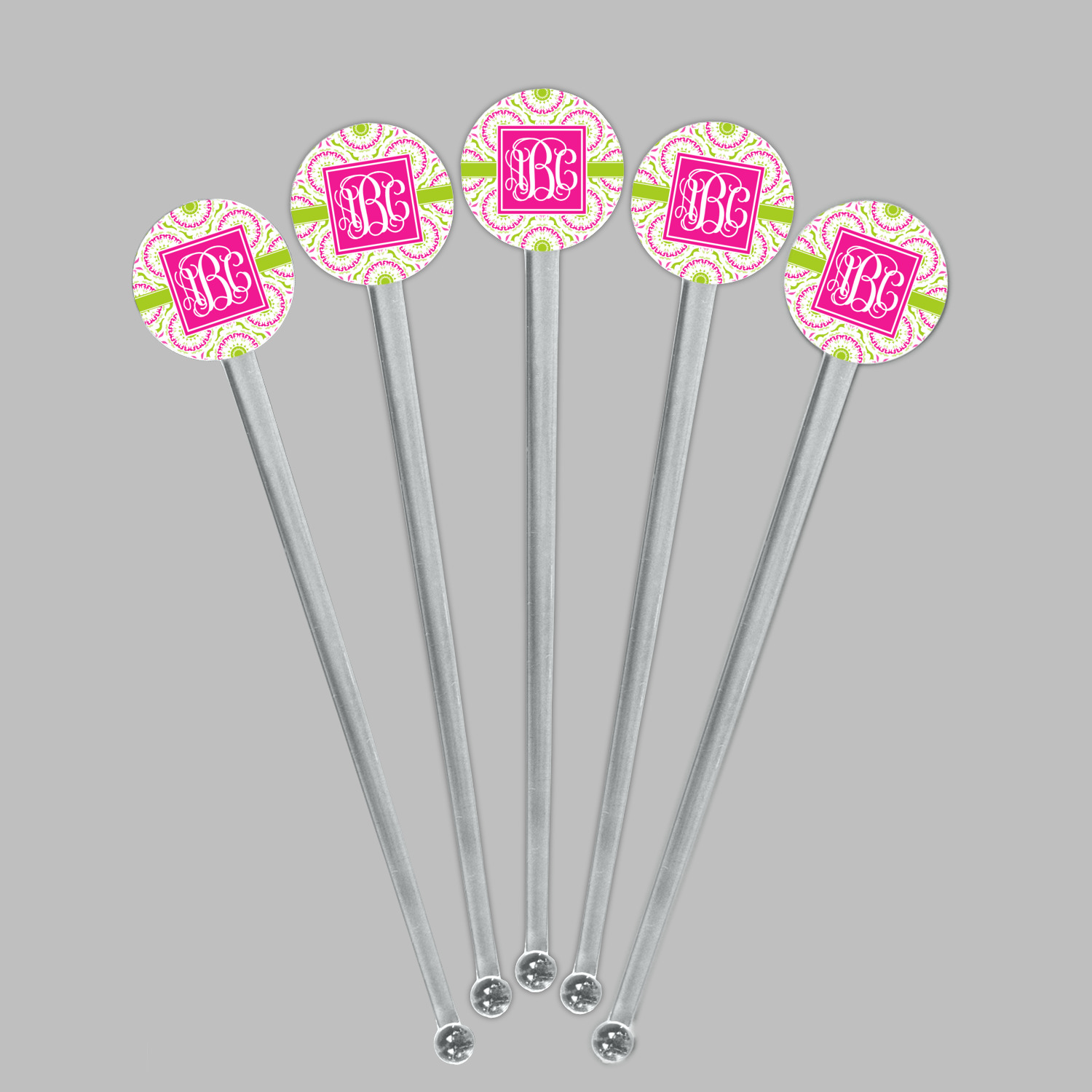 This design has a beautiful suzani floral pattern for the background. The colors in the background are white, hot pink, and lime green. These colors look super cute together. There is a lime green ribbon with a hot pink frame on top. Inside the frame is where your personalization goes. Put text or your initials for a monogram.