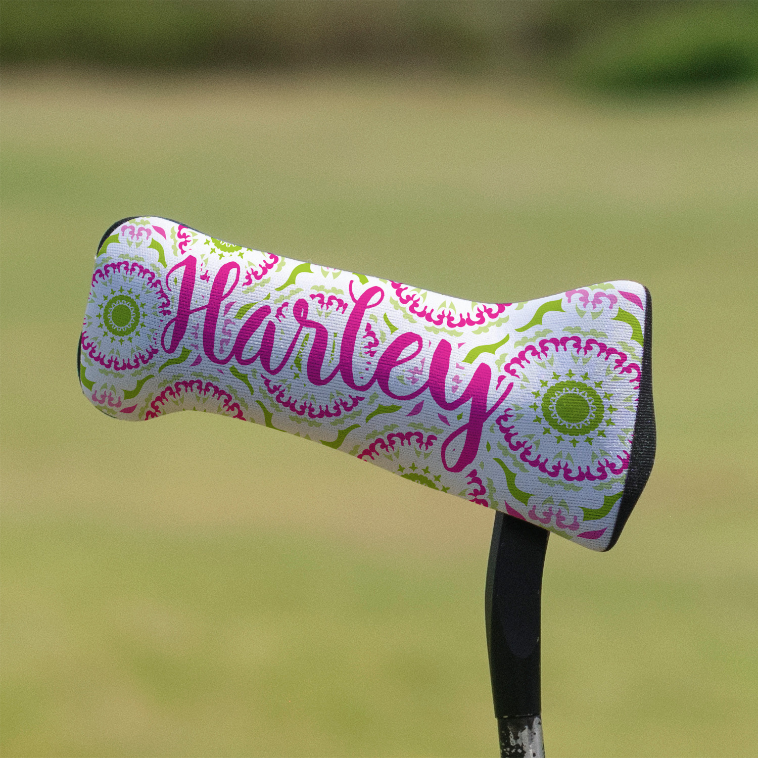 If you hit the putting green Saturday morning, this product is for you. Our custom neoprene putter cover is 5" in wide & 2.25" in high and is compatible with most blade putters. This covers will NOT fit mallet putters.