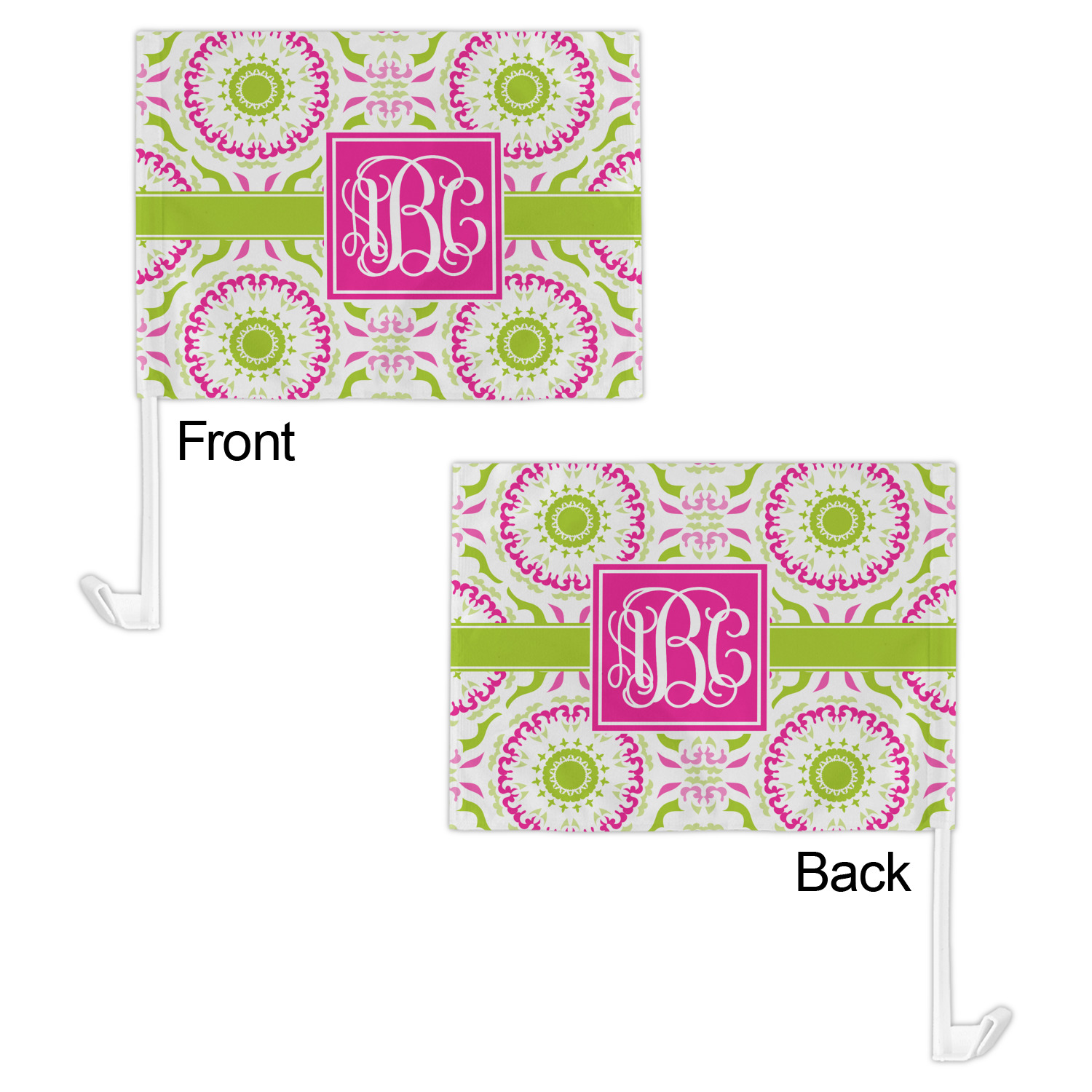 Our personalized flags are made from a durable, yet lightweight cloth that will proudly bear your logo or design of choice, while withstanding the outside elements. We have two size options - 8" x 11" and 11" x 15". Both come with a flag pole which includes a clip that secures the pole to the side window, whether it is rolled up or down. The flags are printed on both sides to display your design from all directions.
