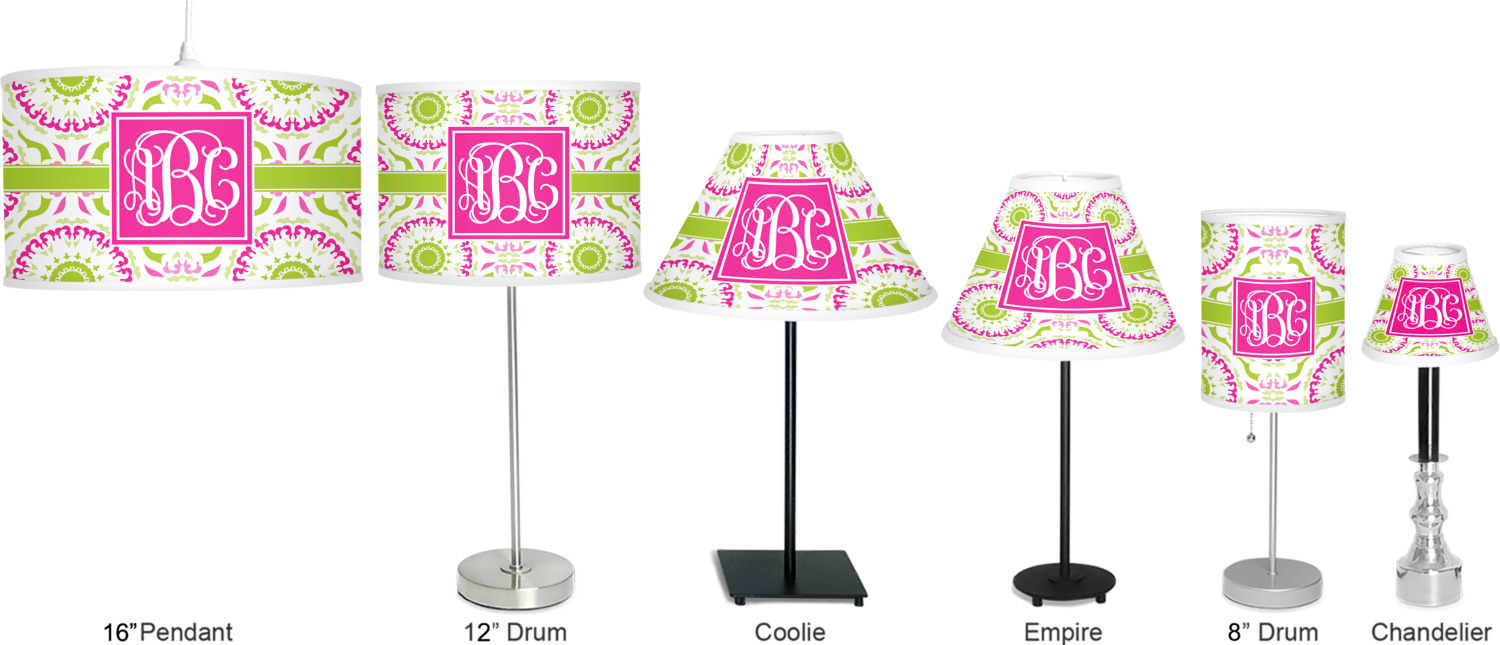 This design has a beautiful suzani floral pattern for the background. The colors in the background are white, hot pink, and lime green. These colors look super cute together. There is a lime green ribbon with a hot pink frame on top. Inside the frame is where your personalization goes. Put text or your initials for a monogram.