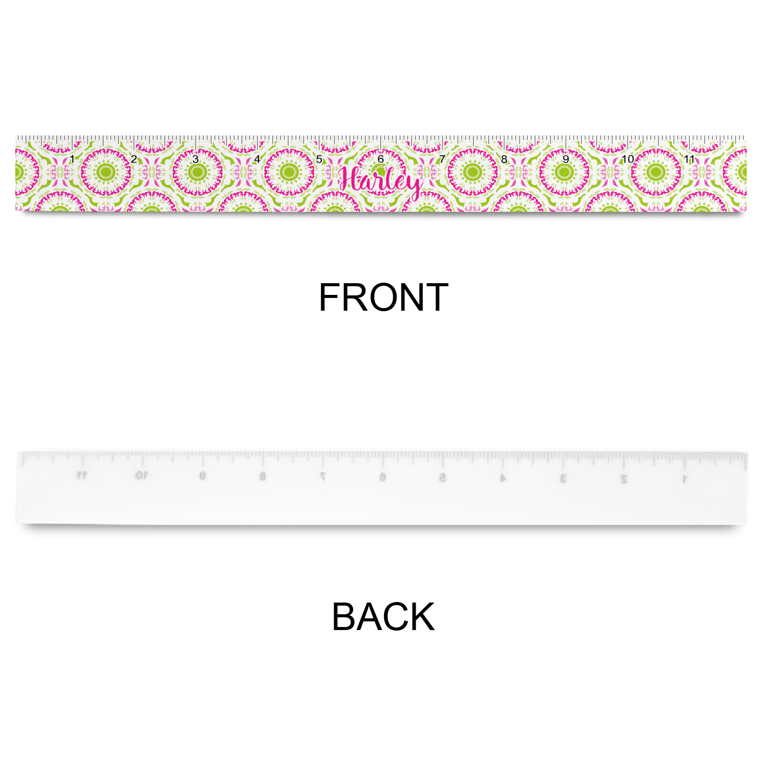 This design has a beautiful suzani floral pattern for the background. The colors in the background are white, hot pink, and lime green. These colors look super cute together. There is a lime green ribbon with a hot pink frame on top. Inside the frame is where your personalization goes. Put text or your initials for a monogram.