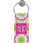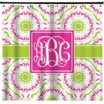 This design has a beautiful suzani floral pattern for the background. The colors in the background are white, hot pink, and lime green. These colors look super cute together. There is a lime green ribbon with a hot pink frame on top. Inside the frame is where your personalization goes. Put text or your initials for a monogram.
