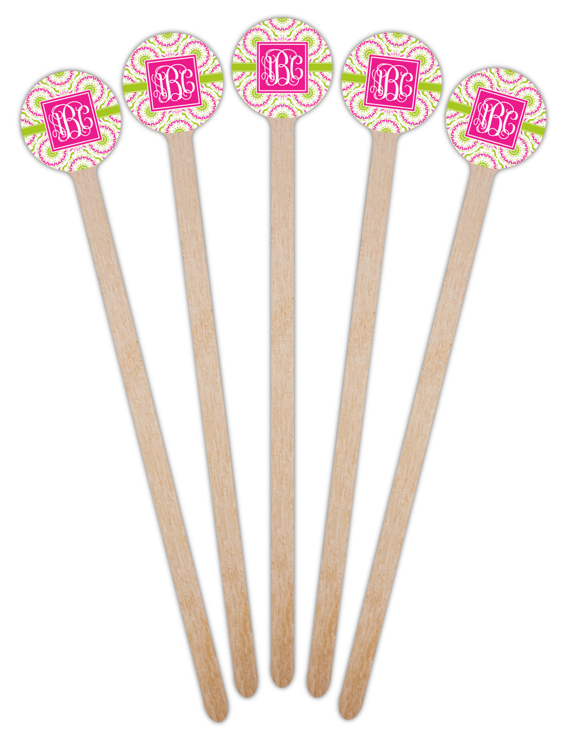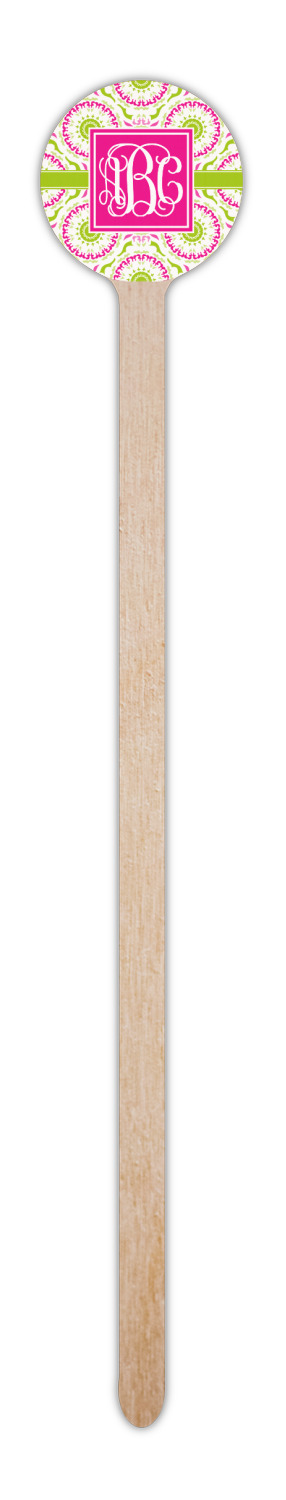 This design has a beautiful suzani floral pattern for the background. The colors in the background are white, hot pink, and lime green. These colors look super cute together. There is a lime green ribbon with a hot pink frame on top. Inside the frame is where your personalization goes. Put text or your initials for a monogram.