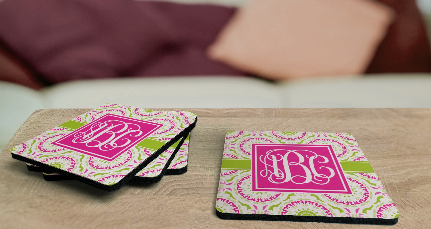 Replace your boring, run-of-the-mill coasters with a set of 4 personalized coasters! When personalized, these coasters will protect your beloved surfaces while adding to your home's decor! Thanks to your coasters bright colors and unique design, your guests will be eager to use them!
