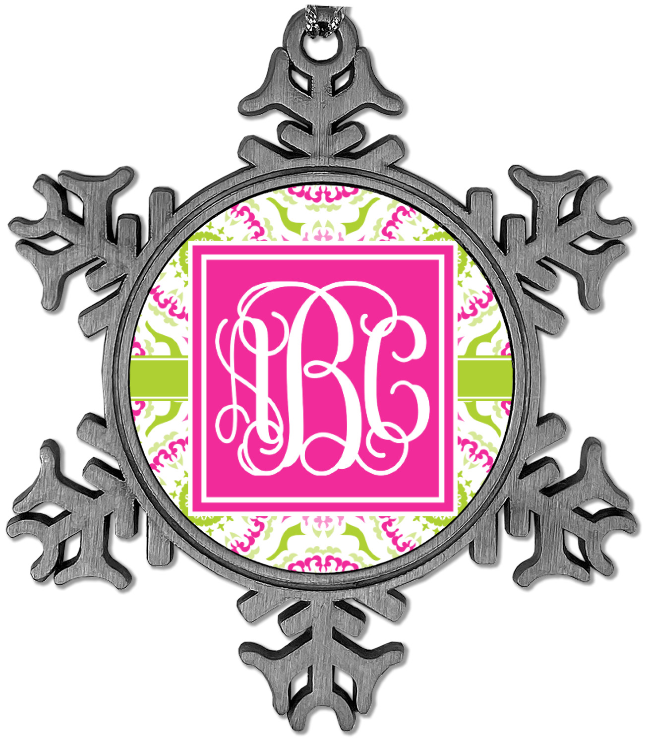 The snowflake shape ornament is an everlasting pewter material with a circular center to display your photo or design, giving it a unique vintage ornament look. Our personalized Christmas ornament comes in a small gift box for keepsake sure to preserve your picture ornament until the next holiday season. The snowflake shape is approximately 3 x 3 with a small silver accent string perfect for hanging. We print your photo or design in the center of the ornament with a size that is roughly 1.75 in diameter.