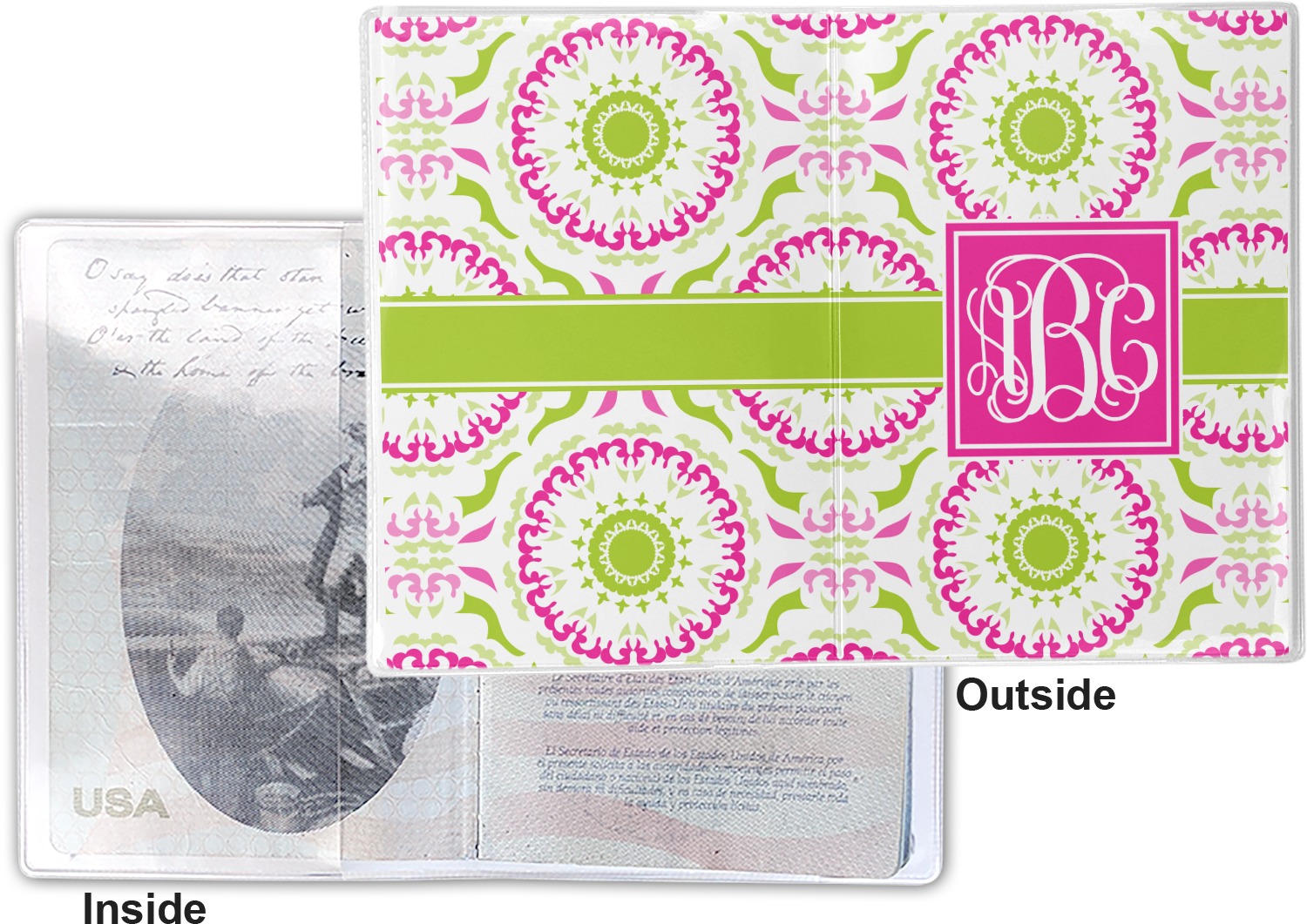 This cover is made of a sturdy clear vinyl with a personalized vinyl insert inside. There is a large and a small pocket on either side to hold the covers of your passport easily and firmly. The passport holder is approximately 7.5" x 5.25", the perfect size to snugly fit your passport. This slim cover is the perfect way to protect your passport without being one more bulky item you have to carry.