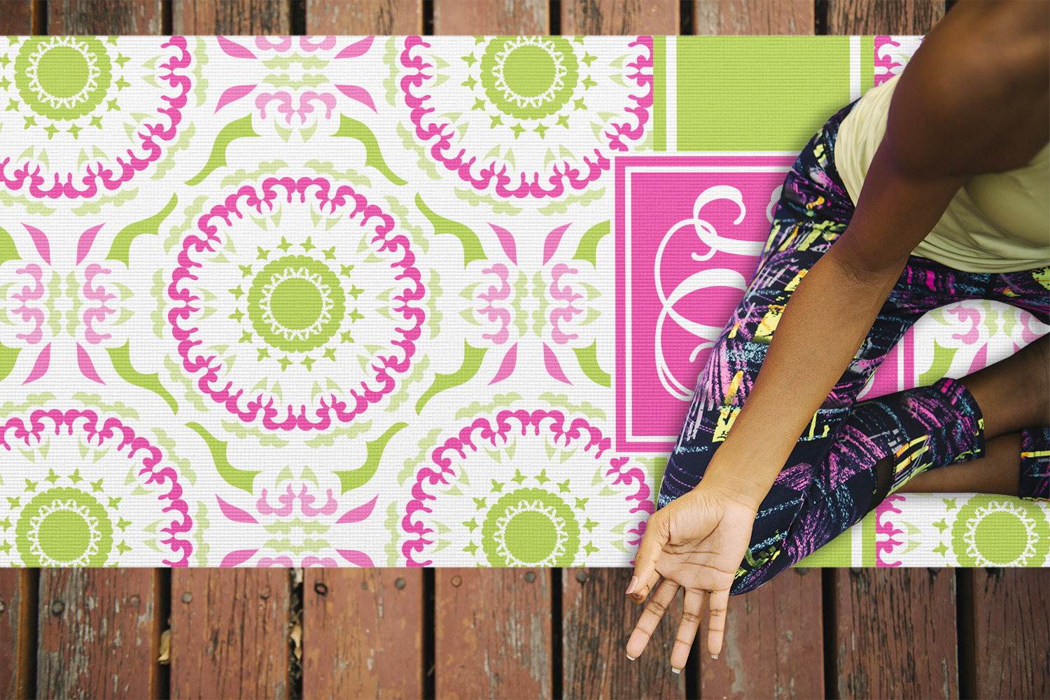 Have fun picking the perfect design for your yoga mat! We have multiple yoga related designs and fills within our system, as well as thousands of other fills and patterns to choose from. Choose every part of your design from patterns to graphics to text. Even design it vertically OR horizontally. Personalize your yoga mat in every way to make it fit your personality!