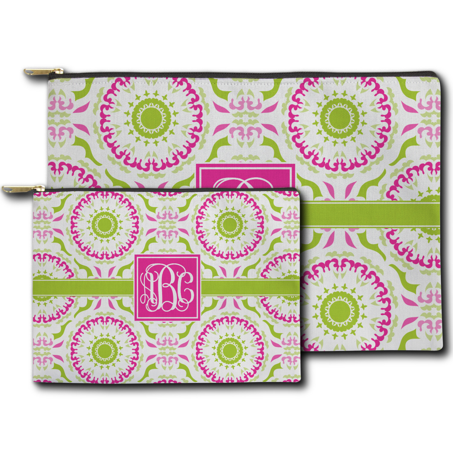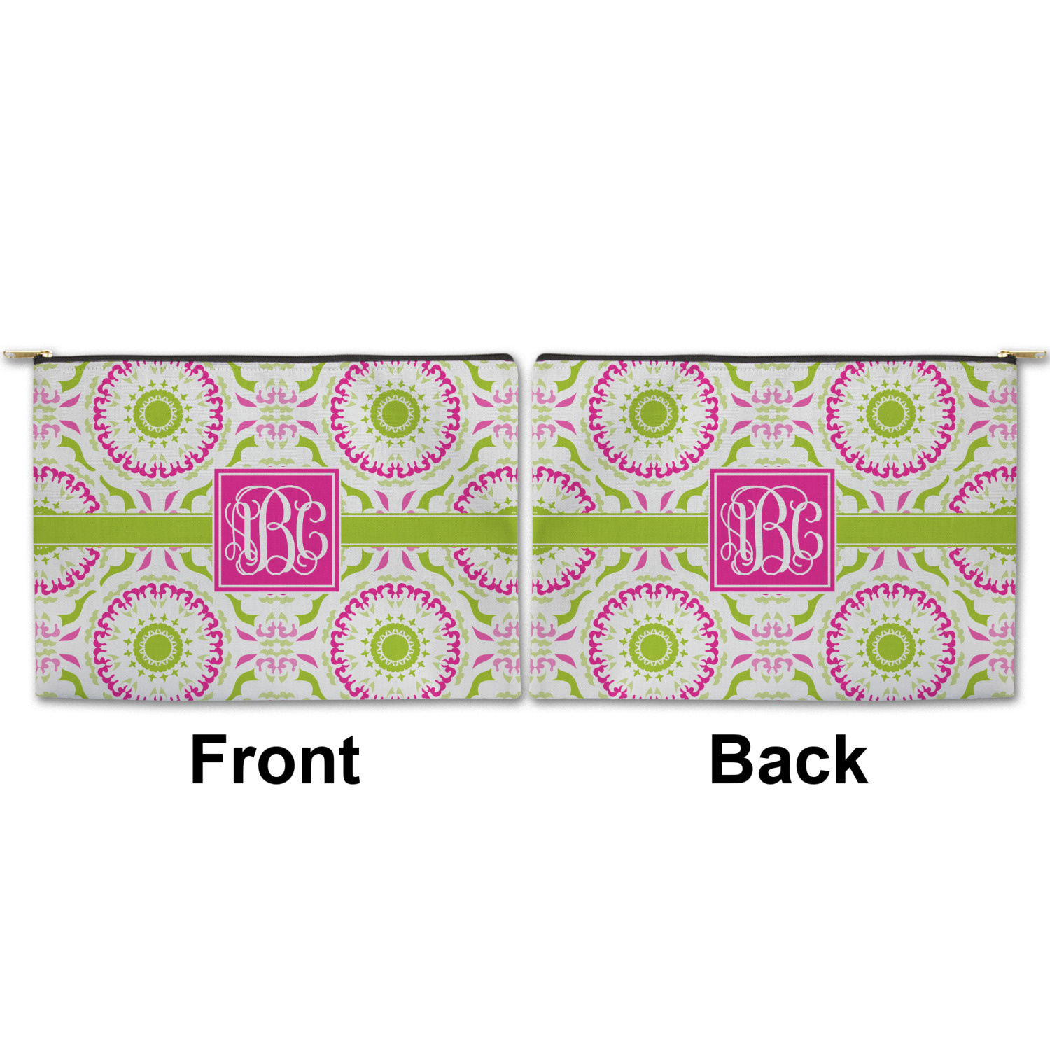 You can design both the front and the back of the pouch - same design, two complementary designs or two totally different designs - the choice is yours! We offer many different personalization styles i.e. name, name & initial, monograms - so the choice to personalize is also yours.
