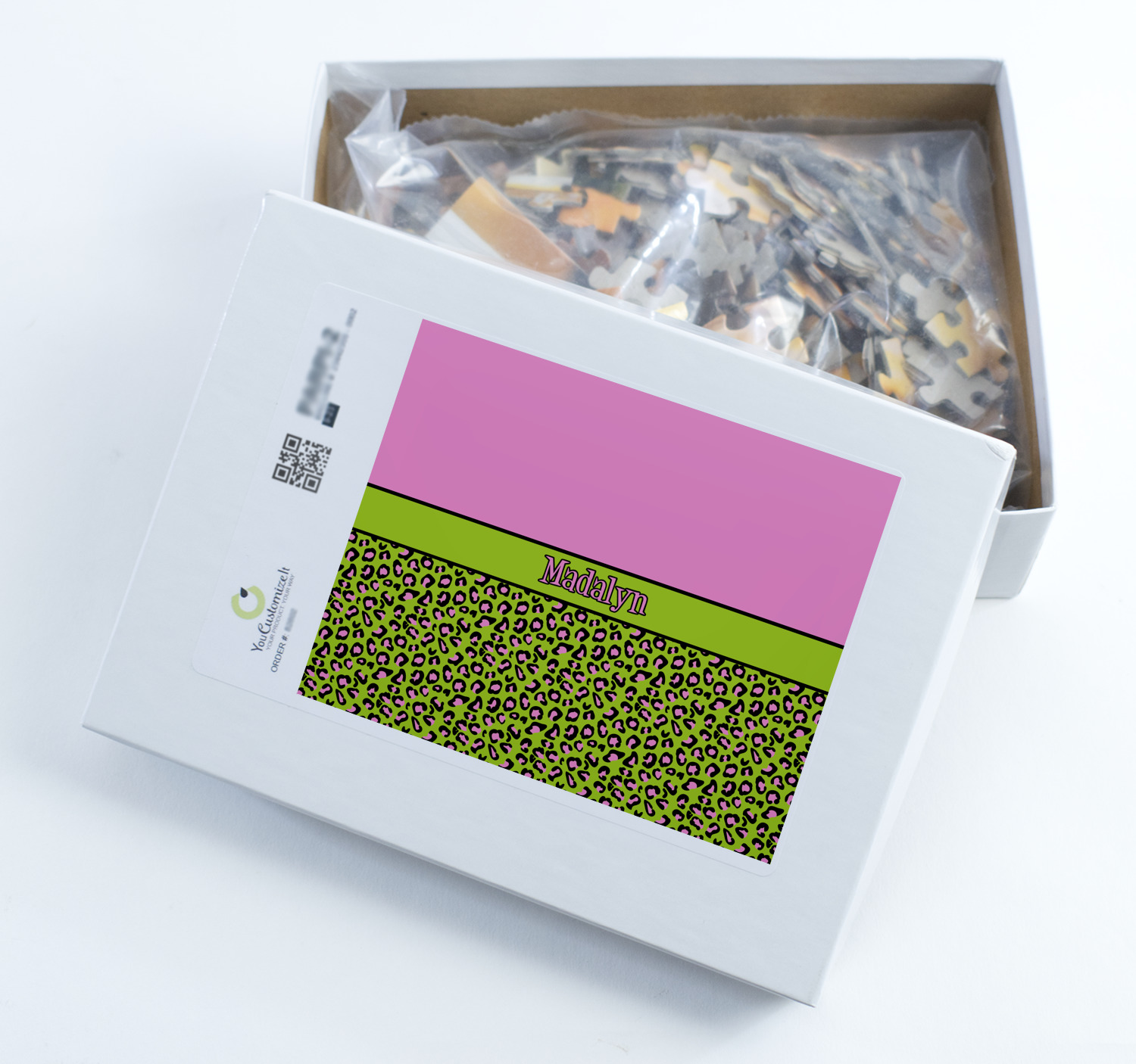 You can also upload your logo or art that you or your kids drew. To create more challenging jigsaw puzzles, you can create a pattern from with your logo or artwork. You can also add other elements such as text or personalization.