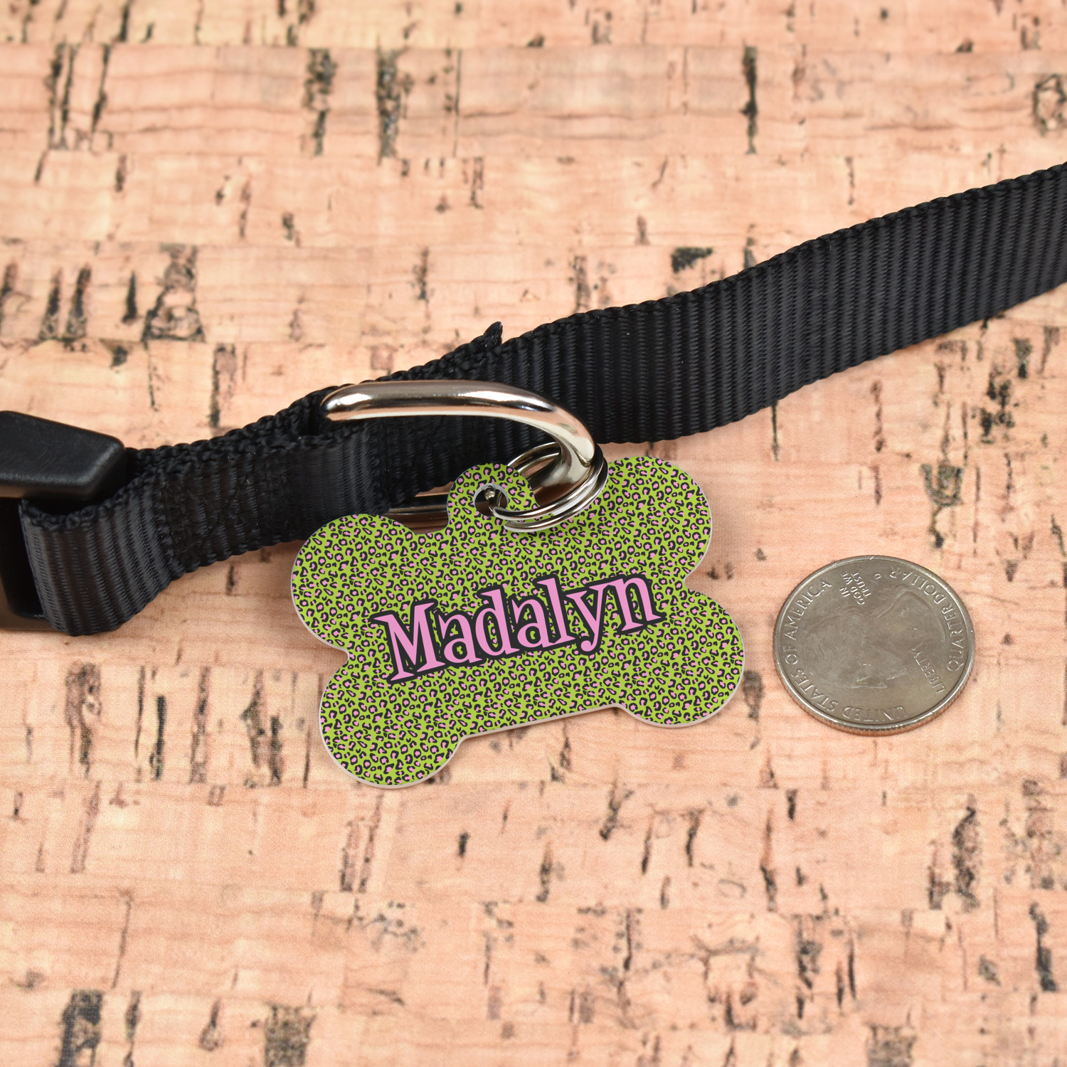 The large bone shaped dog tag measures 2" wide X 1 " tall.