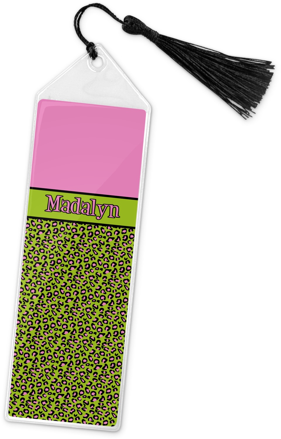 Your personalized bookmark is made of a sturdy, clear vinyl, and is approximately 7.5" x 2.25". We display your personalization on vinyl inserts that are placed on both sides. Accompanying each book marker is a black, fringe tassel that attaches to the reinforced, triangular header.