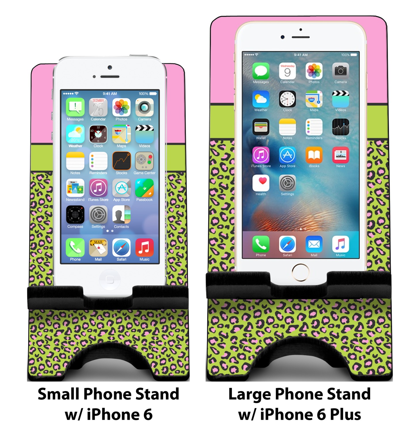 To meet your needs, we offer four variations of this IPhone stand. The backboard of the first version is shaped as a plain, yet sleek rectangle, and is available in two sizes. Our smaller size is approximately 4 by 3.25 by 7 inches, while the larger model is 4 by 3.77 by 8.5 inches. Alongside this model, we also provide you with a more decorative option. The upper part of our second version features a curved edge, for a classy, suave appearance. This phone holder is also sold in two sizes: a smaller version, which is 4 by 3.25 by 7 inches, and our larger model, which is 4 by 3.77 by 8.5 inches. Both models will support large phones, but the larger model is better if you wish to proudly display your personalized design.