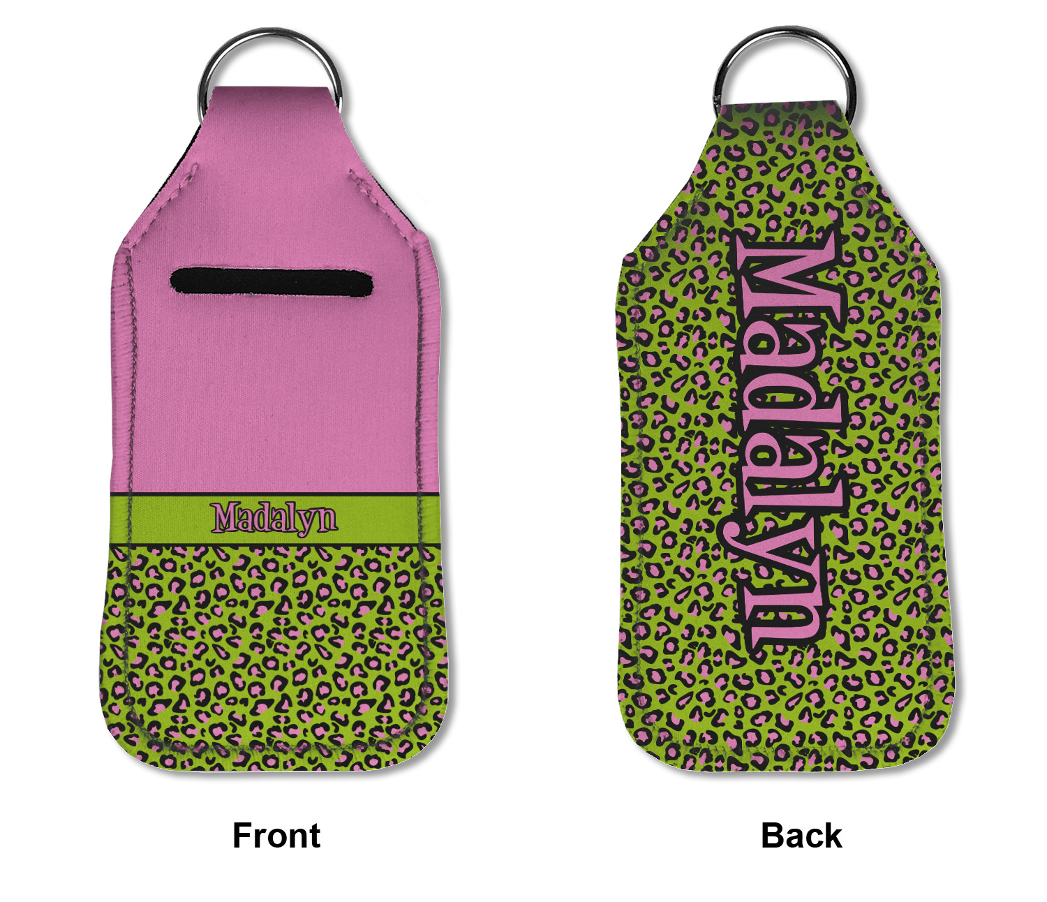 Each hand sanitizer holder comes with its own empty travel-sized, refillable hand sanitizer sure to fit snug in your customized sanitizer case! Our hand sanitizer cases are a durable, yet soft neoprene material sure to last any daily activities or travel agenda. Customize and personalize a hand sanitizer bottle holder with one of our two sizes - small (4.25" x 2.25") or large (5.5" x 2.5"). Each travel sanitizer holder comes with a keyring for attachment on bags, keys, or more!