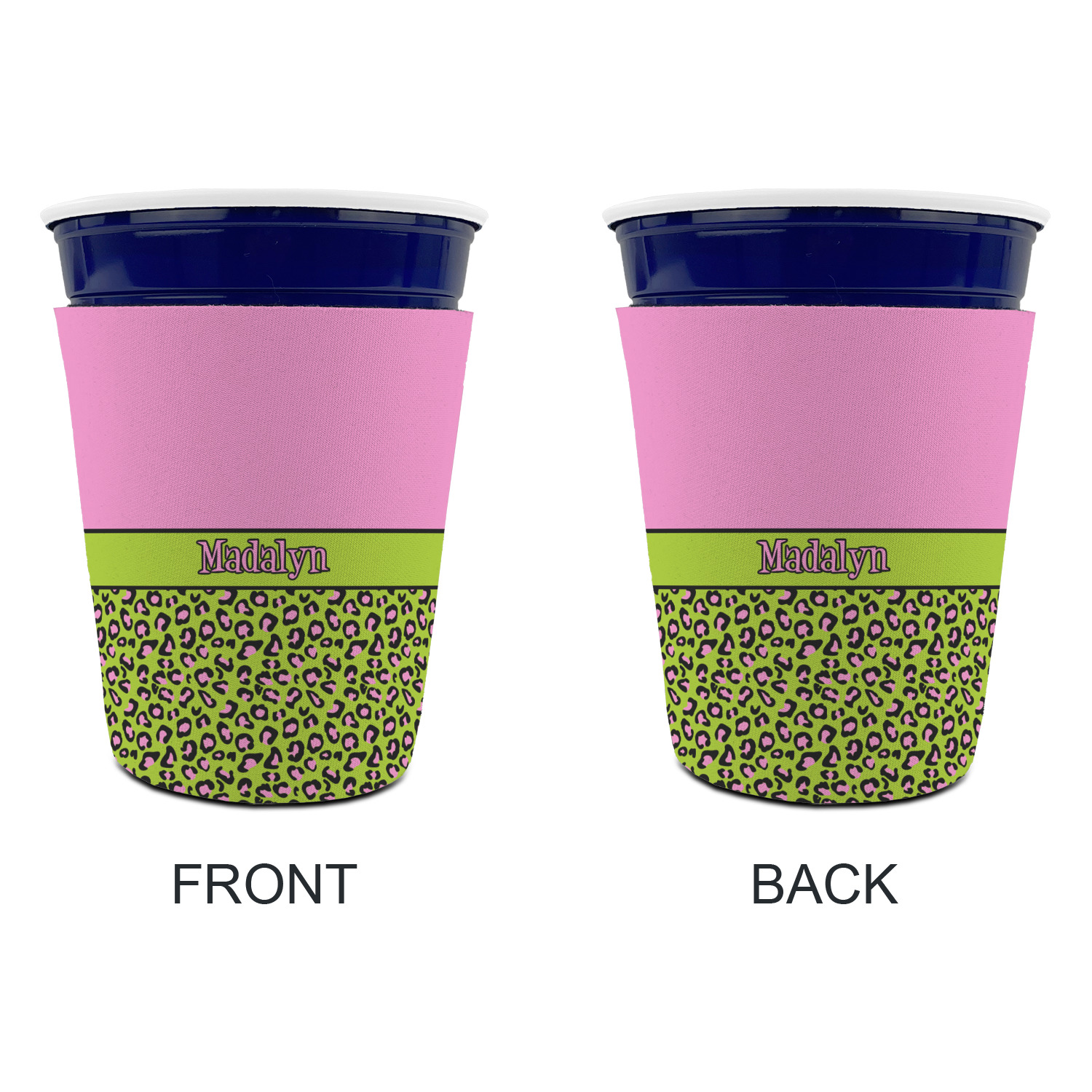 Made from neoprene with a polyester outer fabric and sewn seams, these premium quality party cup sleeves are very durable and will hold up to heavy use. They are available in 2 styles - with a bottom or just a sleeve to go around the outside of the tapered cup. The sleeve covers are about 4" tall and cover about 90% of the classic 16 oz. Solo cup.
