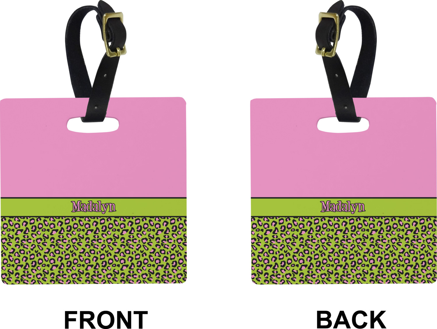 These cute luggage tags are made of a fiber-reinforced, UV-resistant plastic, making them waterproof and durable enough for both everyday use and the rugged adventures of any traveler! A leather strap with holes and a buckle is included with your purchase and can be used to attach your custom luggage tag to any suitcase, backpack, or duffel bag. You can design these travel tags as you wish; your customization will be displayed across the front, while the back will show as little or as much personal information as you want.