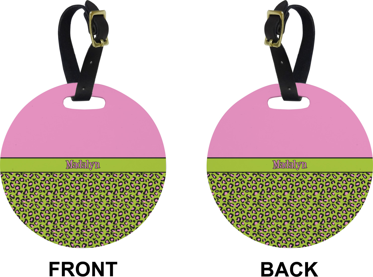 These personalized bag tags are sold in a variety of shapes, so that you may find the product that meets your vision exactly. We sell a round luggage tag, which measures at approximately 4" x 4". Our square luggage tag is about 3.5" x 3.5", while our rectangular version is 2.75" x 4 ".
