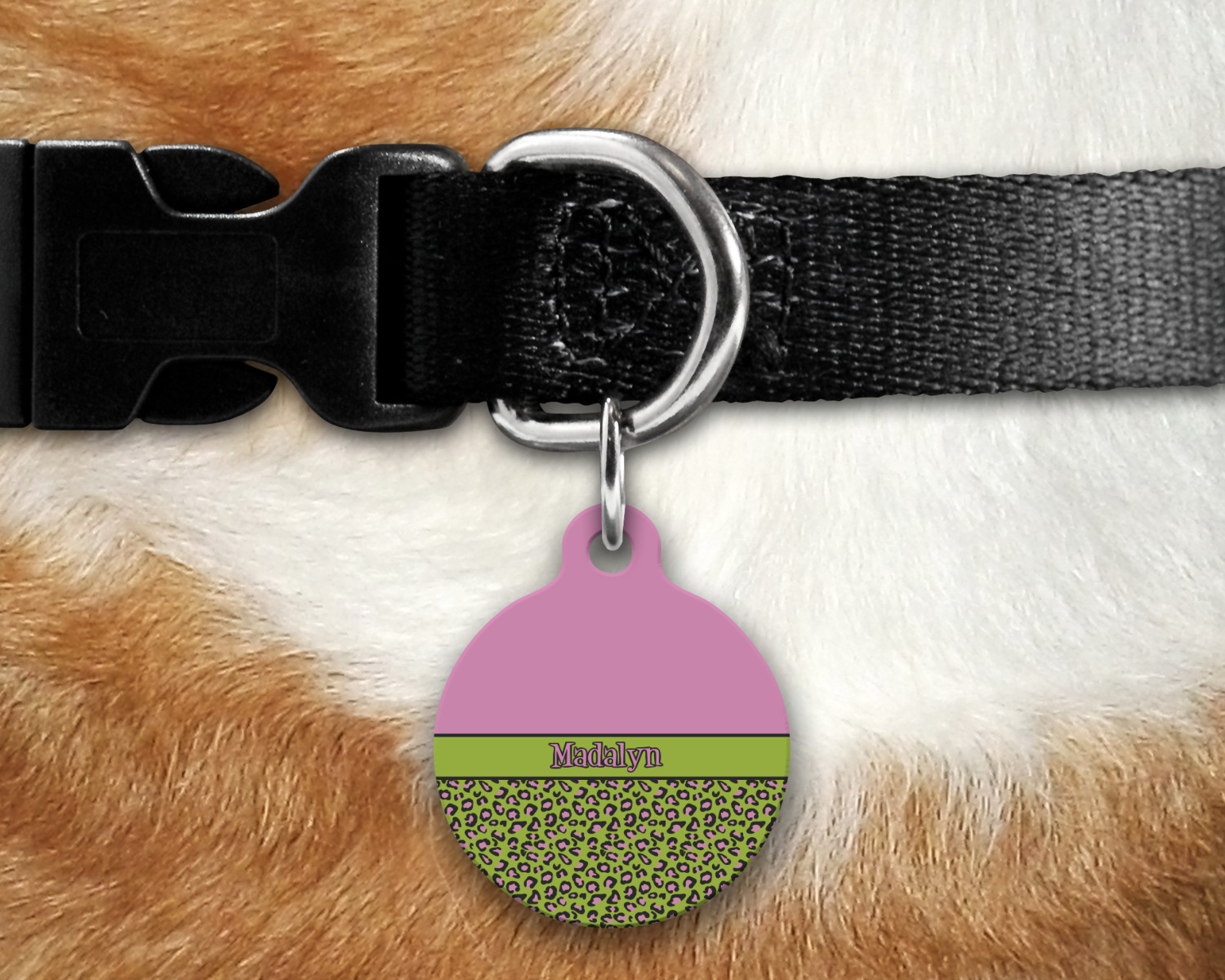 Go ahead; skip the monotony of plain pet ID tags with your very own, customized & personalized, round pet tag! This pet ID tag, fitting for both cats and dogs, will catch the eye of any onlooker (humans, canines, and felines, alike!) and accentuate your pet's individual personality.