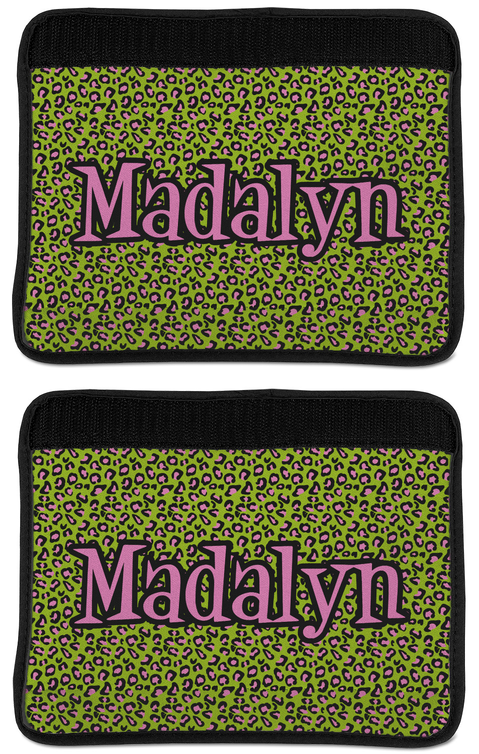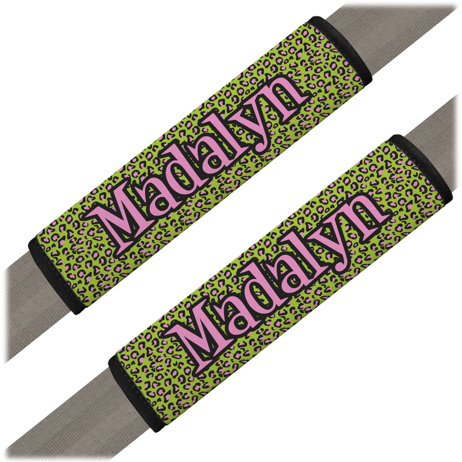 Made from neoprene, our seat belt strap covers wrap around the belt itself and have a Velcro tab for easy attachment and closure. The belt's edges are trimmed with a black polyester for a secure finish. Each cover is 9.5 by 7 inches when open and 9.5 by 2.5 inches when closed. We print your personalized design on the face of the seat belt pad.