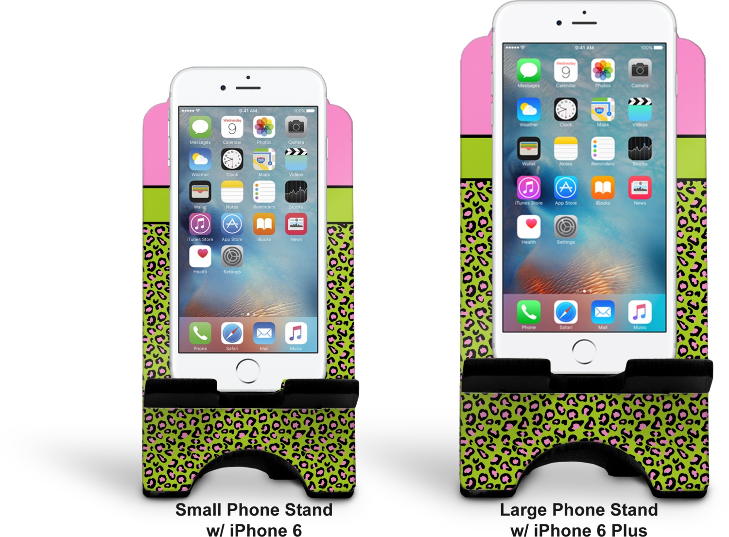 To meet your needs, we offer four variations of this IPhone stand. The backboard of the first version is shaped as a plain, yet sleek rectangle, and is available in two sizes. Our smaller size is approximately 4 by 3.25 by 7 inches, while the larger model is 4 by 3.77 by 8.5 inches. Alongside this model, we also provide you with a more decorative option. The upper part of our second version features a curved edge, for a classy, suave appearance. This phone holder is also sold in two sizes: a smaller version, which is 4 by 3.25 by 7 inches, and our larger model, which is 4 by 3.77 by 8.5 inches. Both models will support large phones, but the larger model is better if you wish to proudly display your personalized design.