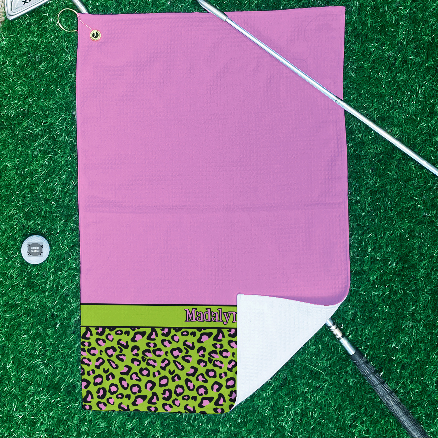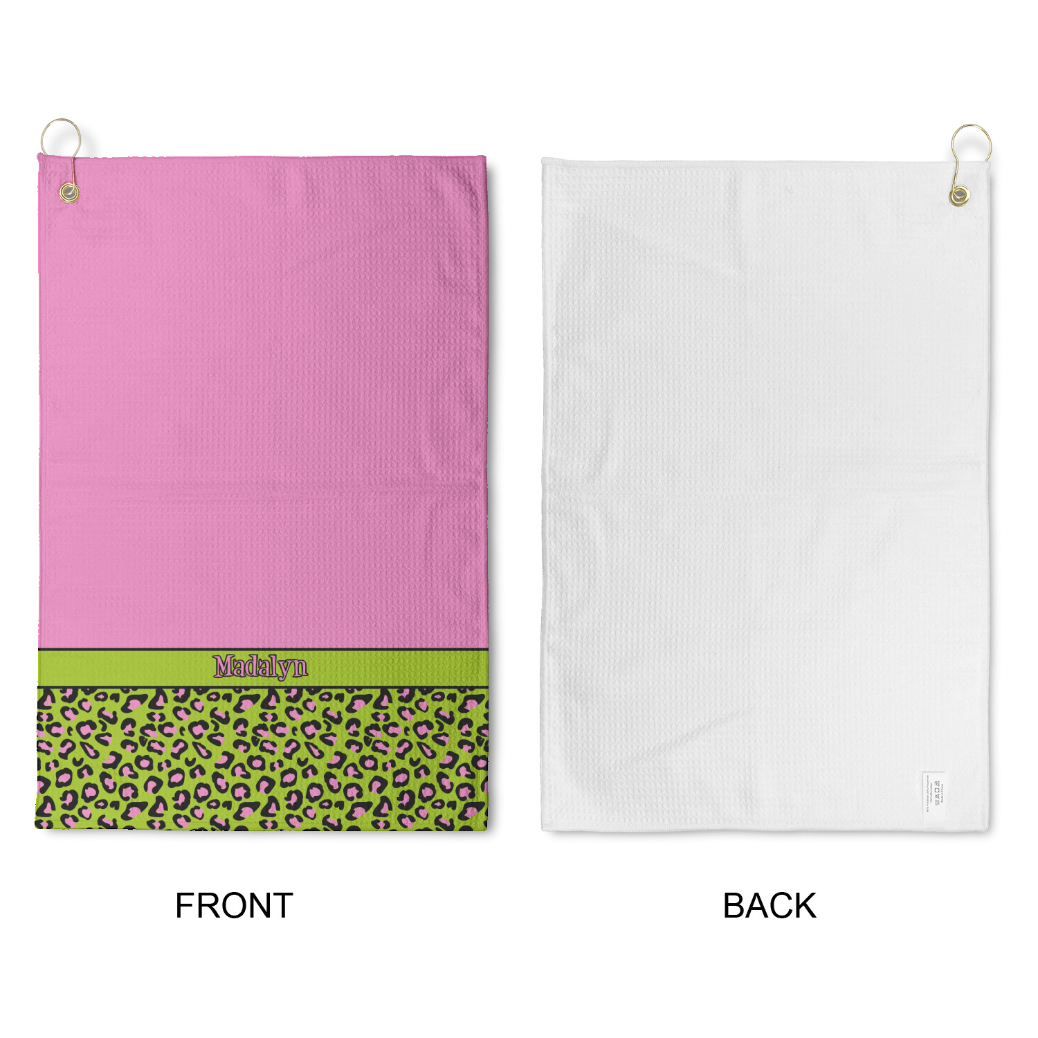 Trying to choose which golf towel is right for you? Our standard golf bag towel (one size - 13" x 18") is a terry loop style towel with a partial print that is great for normal, everyday use. If you are looking for a poly-cotton blend full print towel look at our standard full print golf towel - available in 2 sizes - small (11" x 18") and large (15" x 25"). If you prefer the look and feel of a soft microfiber towel our microfiber golf towels are a great option and allow you to polish your club and ball surfaces to a nice sheen. The microfiber golf towels are also available in 2 sizes - small (11" x 18") and large (15" x 25"). Lastly the waffle weave towel (available in a single size - 16" x 24") is a fantastic option to give you some texture on your towel to allow for more scrubbing and cleaning when playing in rougher, wetter environments. All of these options are able to be washed with bleach to get them clean and will retain their bright colors.
