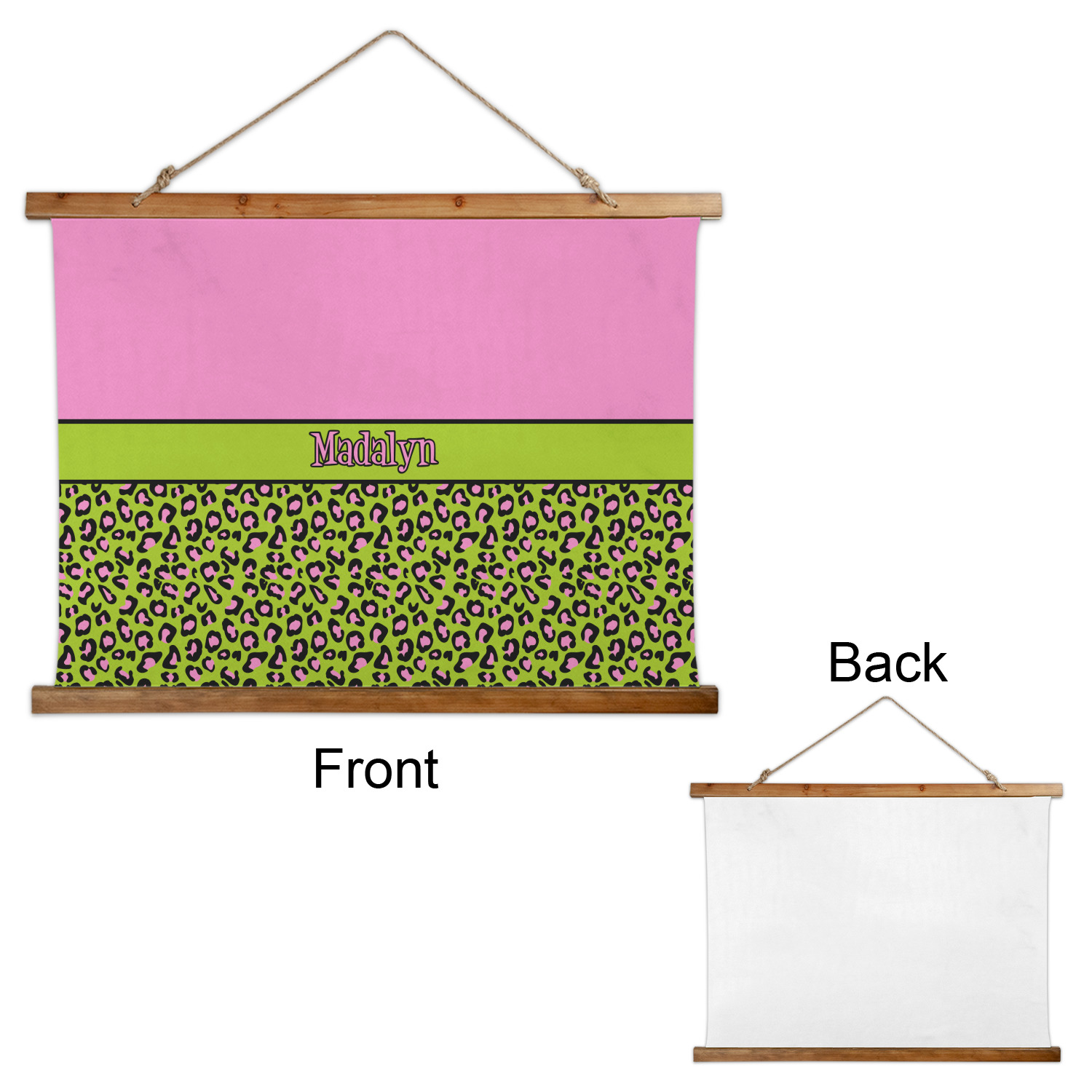 Made in two different orientations - portrait or landscape - both are 26" x 36". Your design is printed on a high quality polyester fabric with hemmed edges. The wood on the top and bottom of the tapestry is 1.25" tall and 0.25" thick and there are two pieces on top and bottom which sandwich the fabric.