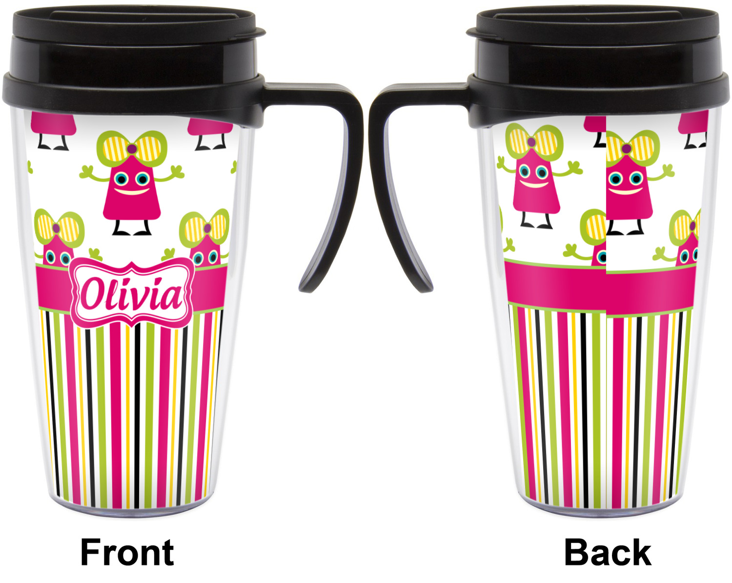 Keep your drink secure while on your daily commute with one of our personalized travel mugs! These travel mugs will add a splash of color and creativity to your kitchen counter-top, car cup holder, office desk, or wherever you choose to place them! With these custom mugs, you'll never have to settle for a boring, run-of-the-mill travel mug.